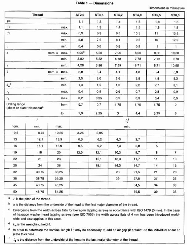Hexagon washers head drilling screws with tapping screw thread (ISO 15480:1999)