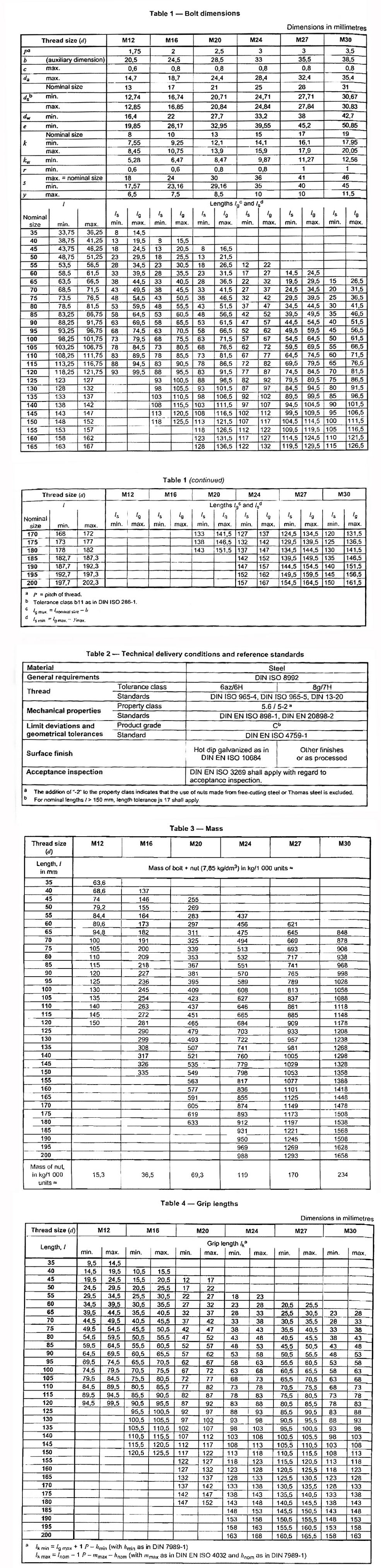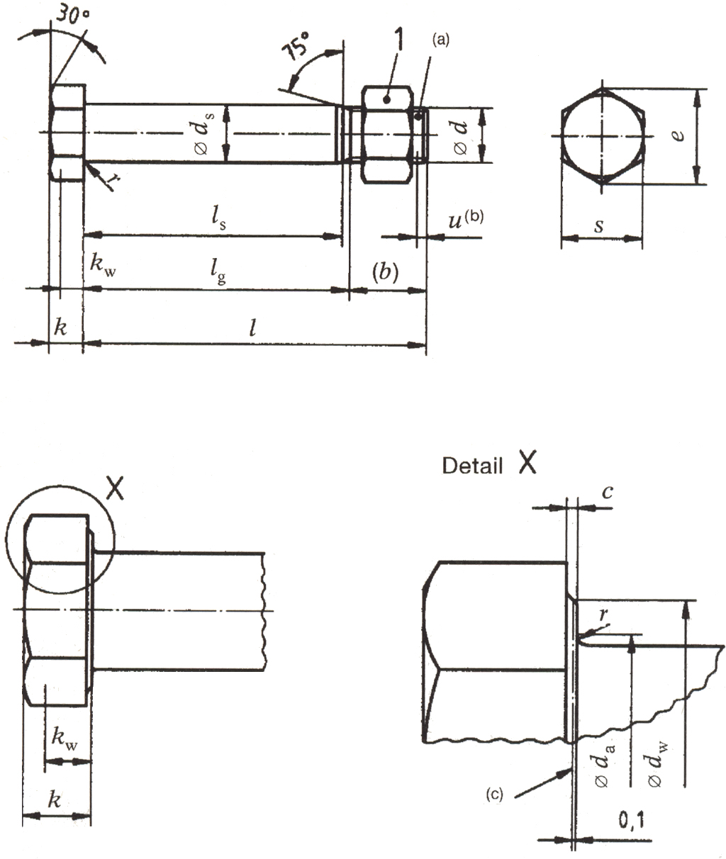 Hexagon fit bolts for structural steel bolting, for supply with hexagon nuts