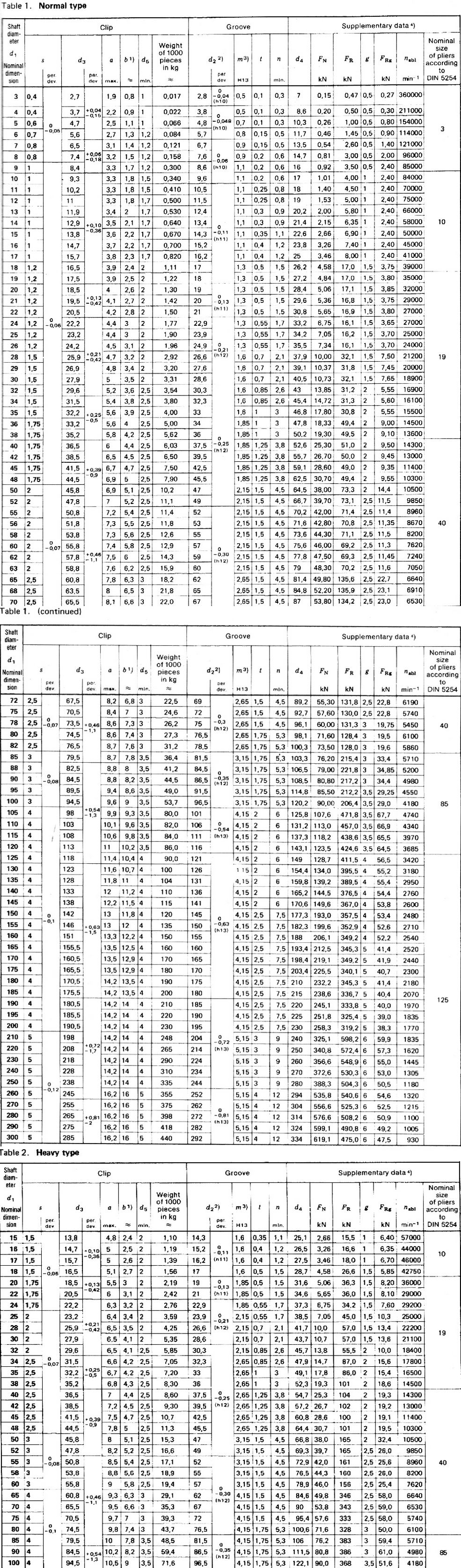 Circlips (retaining rings)for shafts - Normal type and heavy type