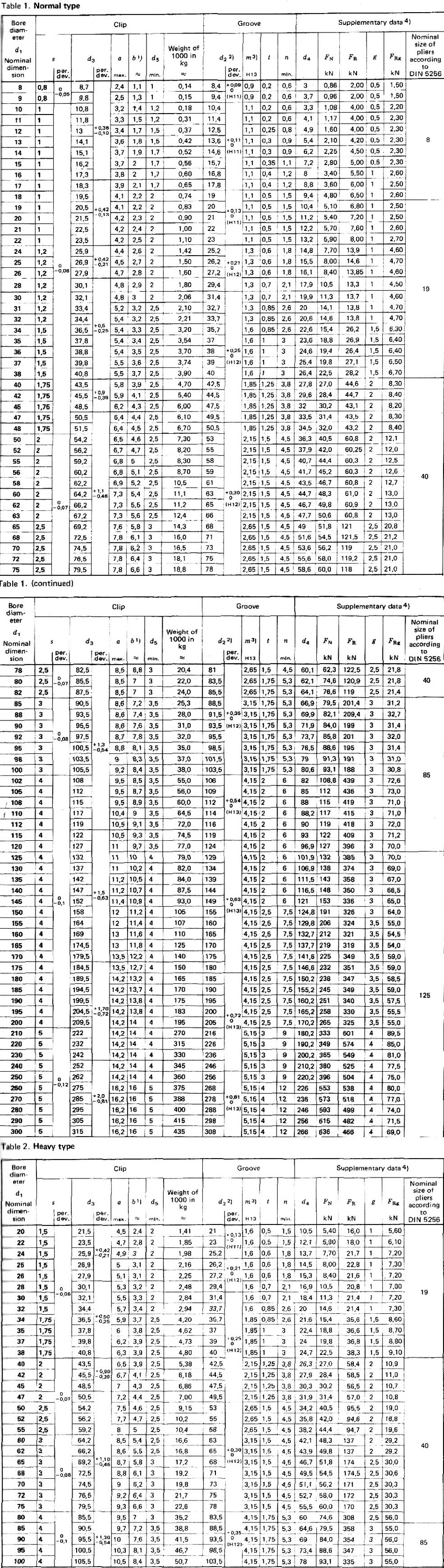 Circlips (retaining rings) for bores - Normal type and heavy type
