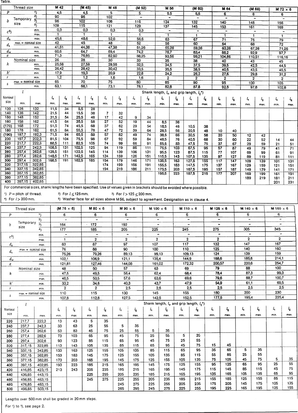 M42 to M160*6 hexagon head bolts - Product grade B