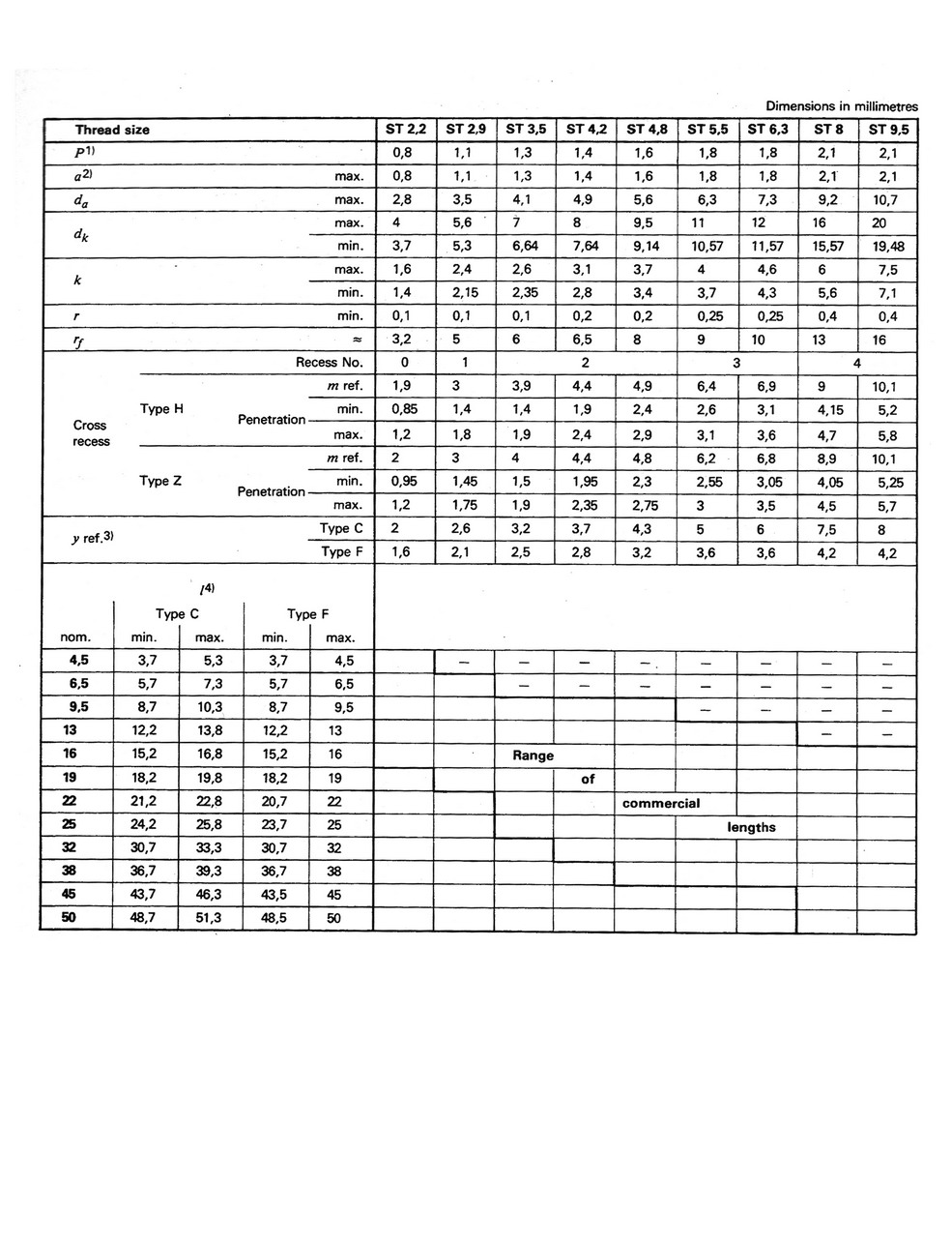 Cross recessed pan head tapping screws