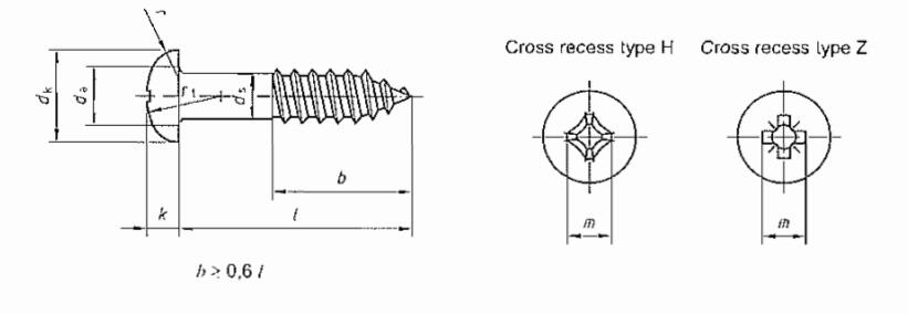 Cross recessed pan head wood screws