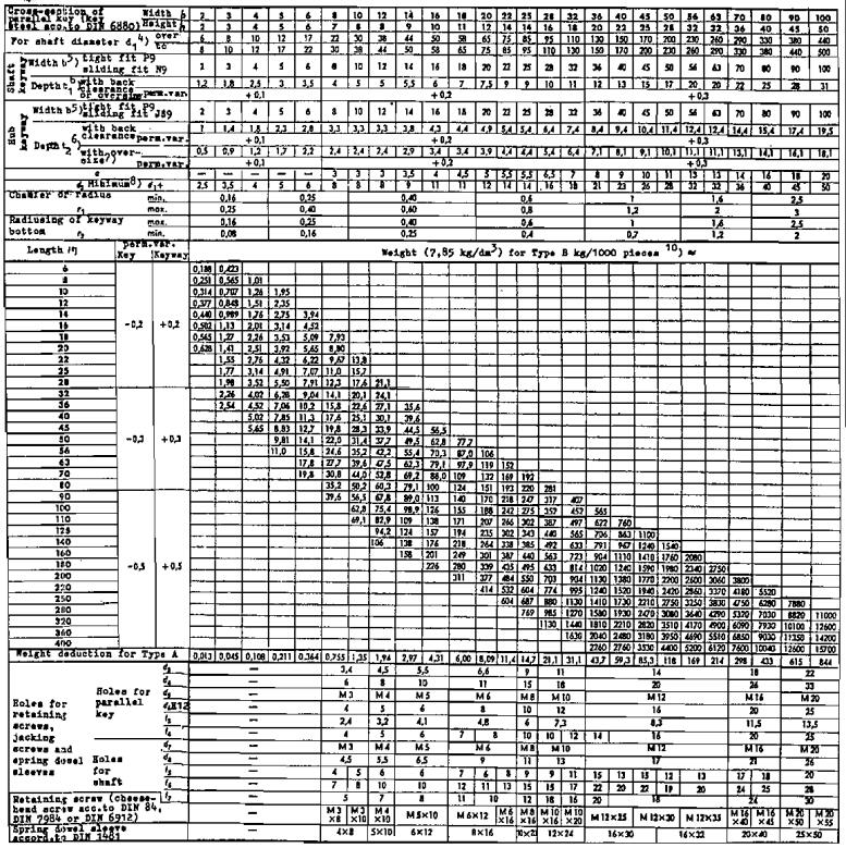 Drive-type fastenings without taper action - Parallel keys, keyways, deep pattern