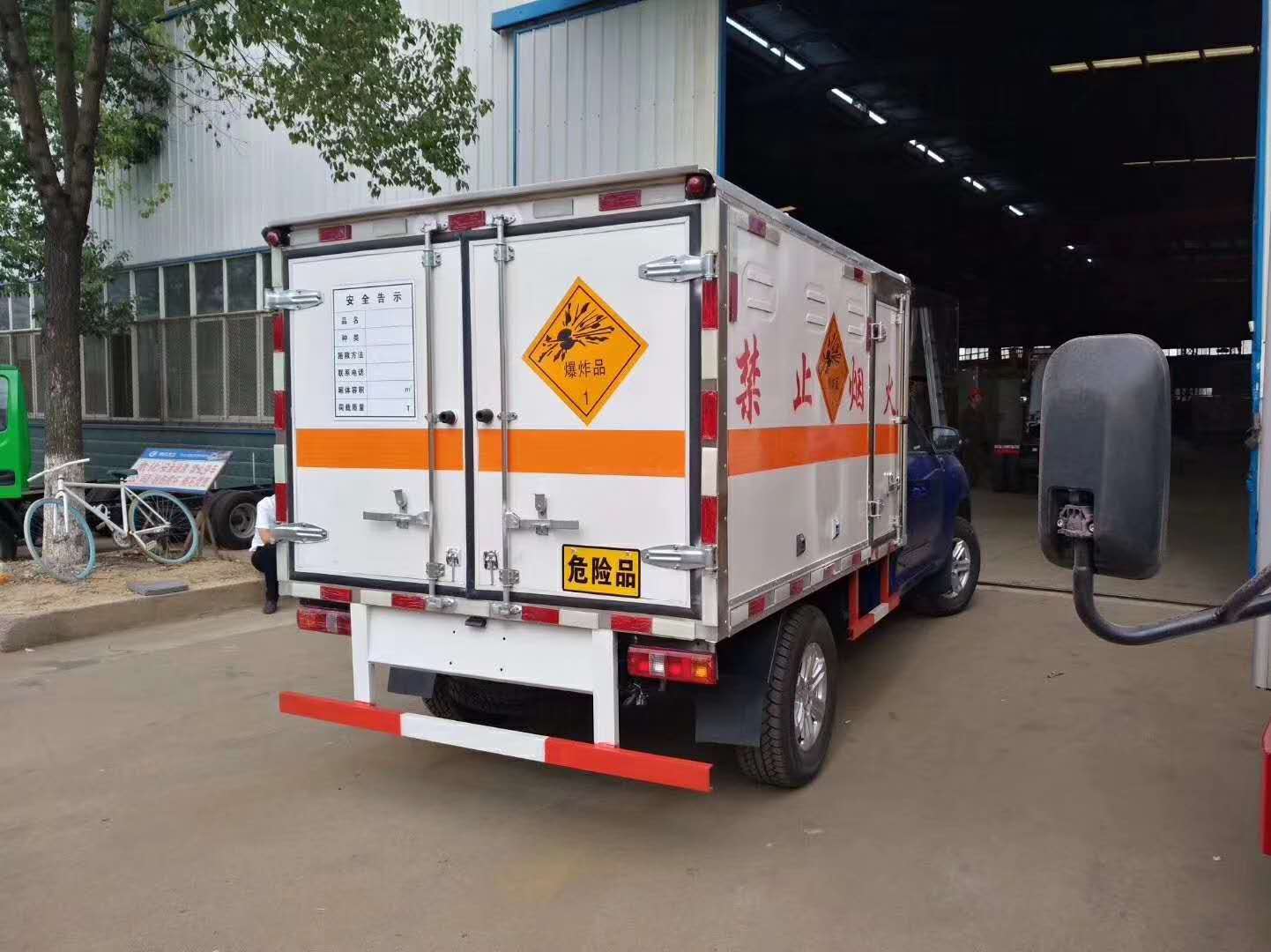 廂體配置:貨廂尺寸為2520X1800X1150(mm)、廂體外飾冷板、內(nèi)飾鋁板、中間為防阻燃泡沫、廂內(nèi)安裝臥環(huán)、煙霧報(bào)警器、防盜報(bào)警器、右邊開側(cè)門、后雙開門、帶拖地靜電帶,其它均按廠標(biāo)組織生產(chǎn);