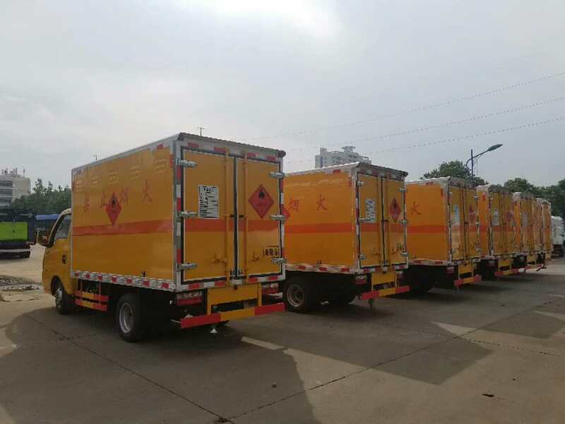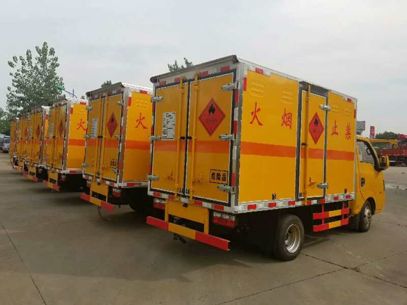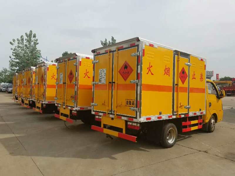 上裝配置:貨廂尺寸:3000×1630×1400(mm)。外飾冷軋鋼板,內飾鋁合金板,中間填充隔熱阻燃材料,(選裝側門和隔倉)廂體兩側上方設有防雨功能自然通風窗口,底部鋪有阻燃導靜電膠板,廂體側面裝有固定拉環,與捆綁帶使用捆綁貨物以避免移動。易燃氣體廂式車廠家訂車熱線:13872880150陳經理/18372237788楊經理。在車廂內頂部安裝感煙報警器,在門器框上方安裝有防盜報警器,廂體外側安裝示廓燈及滅火器支架,配置兩個滅火器,并有“嚴禁煙火”和“爆”等字樣,廂體周邊貼反光標識。后門貼有安全告示,危險品標牌。車輛尾部安裝兩條拖地導靜電膠帶,駕駛室頂部裝有安全三角燈。廂體顏色有:黃、白、灰色等可選;