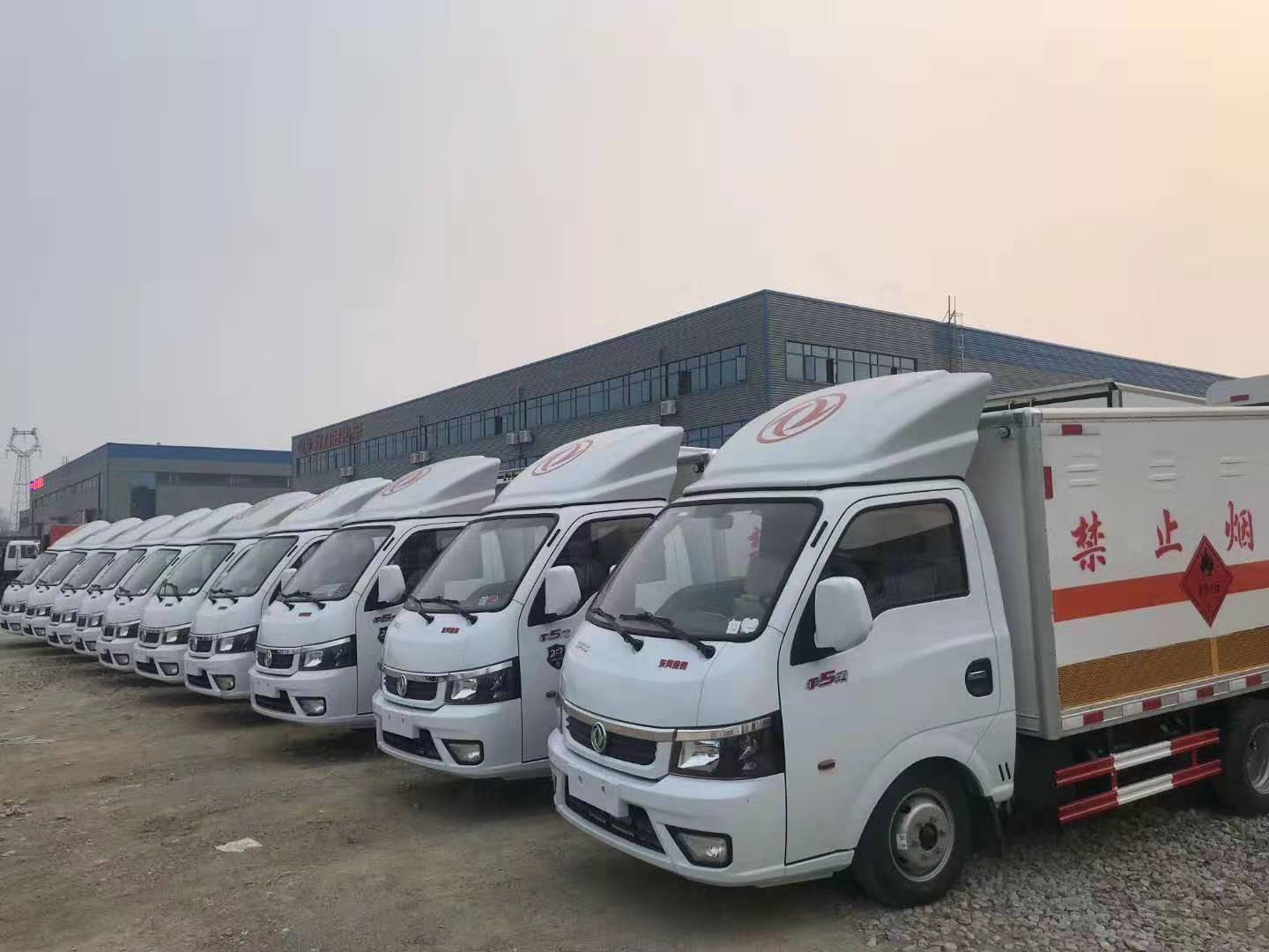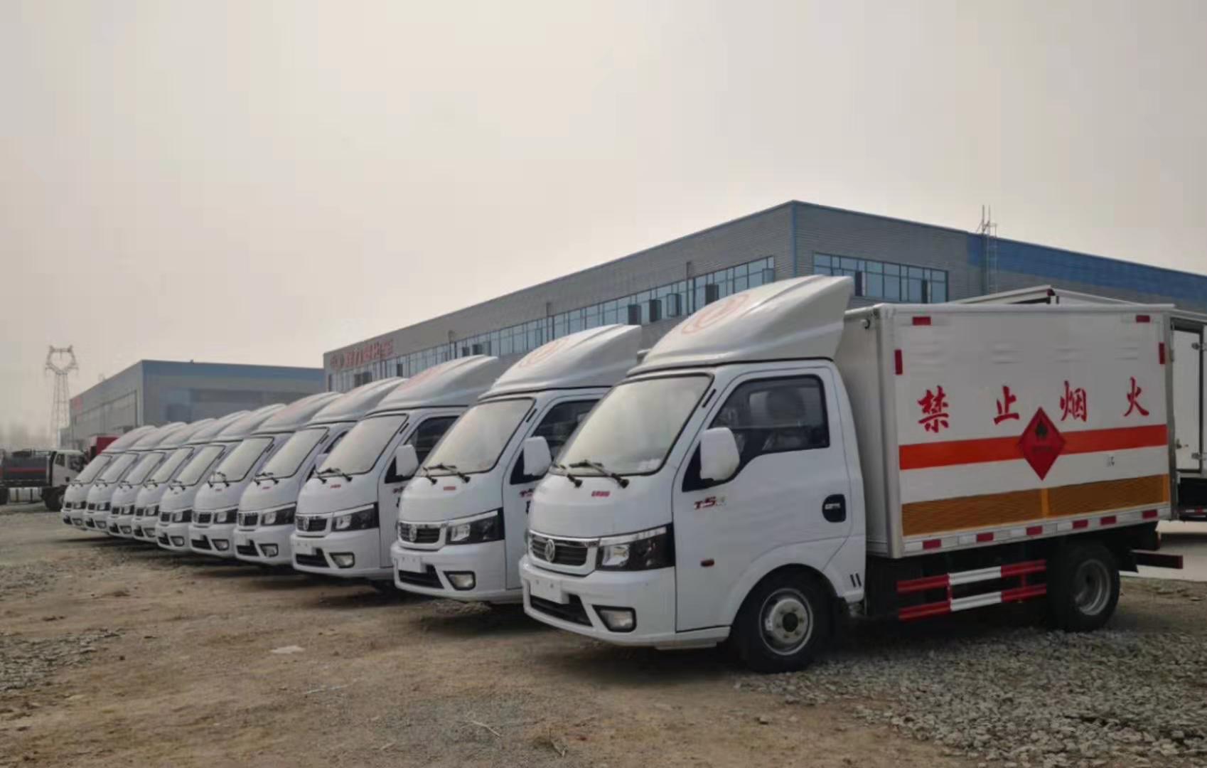 整齊劃一的東風途逸易燃氣體廂式運輸車擺放在公司廠區門口,在余輝照耀下顯得格外耀眼,一排排車輛即將服務千家萬戶,愿吳總用車愉快、生意興隆!訂購危險品車來程力專汽,給您專業的解答和實在的優惠價格!歡迎撥打我司24小時服務熱線:13872880150陳經理/18372237788楊經理,程力專汽愿竭誠為您服務!