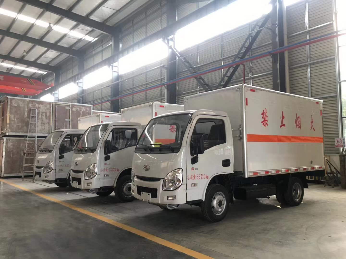 上裝配置:廂體材質(zhì)為外飾冷軋鋼板、內(nèi)飾鋁合金板、中間填充隔熱阻燃材料,選裝側(cè)門和隔倉,廂體兩側(cè)上方設(shè)有防雨功能自然通風(fēng)窗口,底部鋪有阻燃導(dǎo)靜電膠板,廂體側(cè)面裝有固定拉環(huán),與捆綁帶使用捆綁貨物以避免移動(dòng)。在車廂內(nèi)頂部安裝感煙報(bào)警器,在門器框上方安裝有防盜報(bào)警器,廂體外側(cè)安裝示廓燈及滅火器支架,配置兩個(gè)滅火器,并有“嚴(yán)禁煙火”和“爆”等字樣,廂體周邊貼反光標(biāo)識(shí)。后門貼有安全告示,危險(xiǎn)品標(biāo)牌。車輛尾部副梁安裝兩條拖地導(dǎo)靜電帶,駕駛室頂部裝有安全三角燈。廂體顏色可定制:黃、白、灰色等。