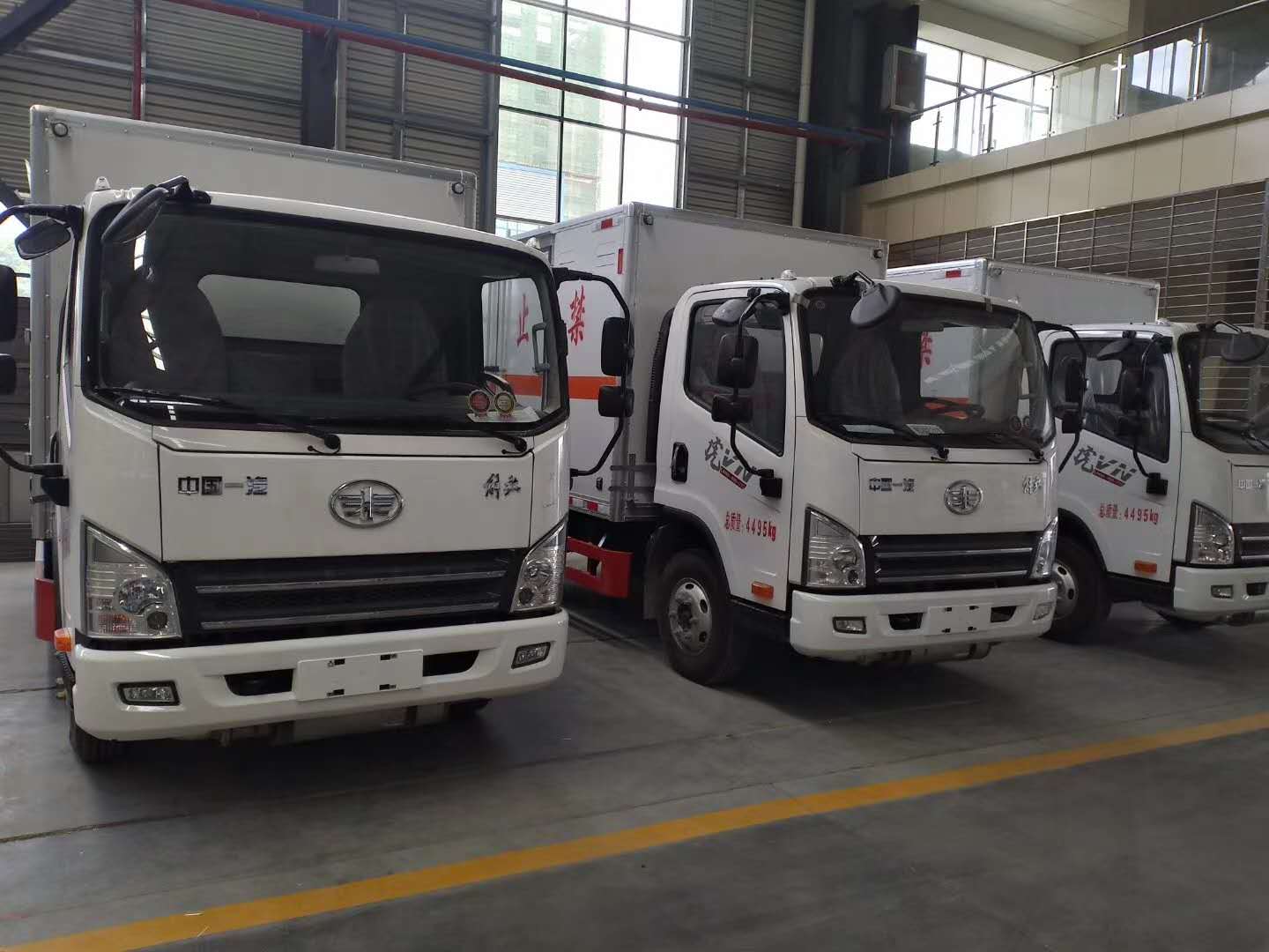 江西熊總專業(yè)從事易燃液體危險品運輸多年,因業(yè)務擴展,在我司增訂了三臺解放三類易燃液體廂式運輸車。為了讓熊總能早日用上車,車間工人加班加點趕制了車輛,目前車輛已生產完畢,以下是熊總來廠自提車實拍: