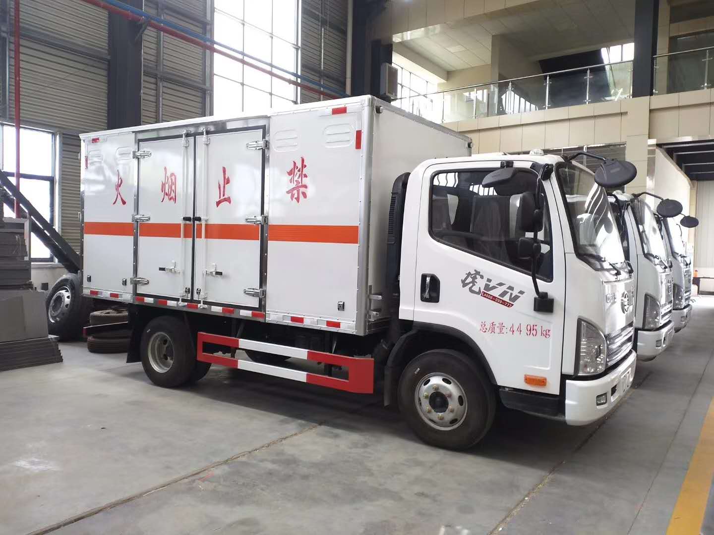 解放三類易燃液體廂式運輸車采用超寬駕駛室,可乘坐三人,目前藍牌車型中少有車型。采用濰柴110馬力發(fā)動機,原廠危貨底盤,3300mm軸距,5檔變速箱,7.00R16防爆胎,斷汽剎,ABS,限速80,前盤制動,排氣管前置,方向助力,原廠空調,多功能方向盤,剎車片報警器。整車尺寸:5995×2250×2780;廂體尺寸:4050×2120×1700