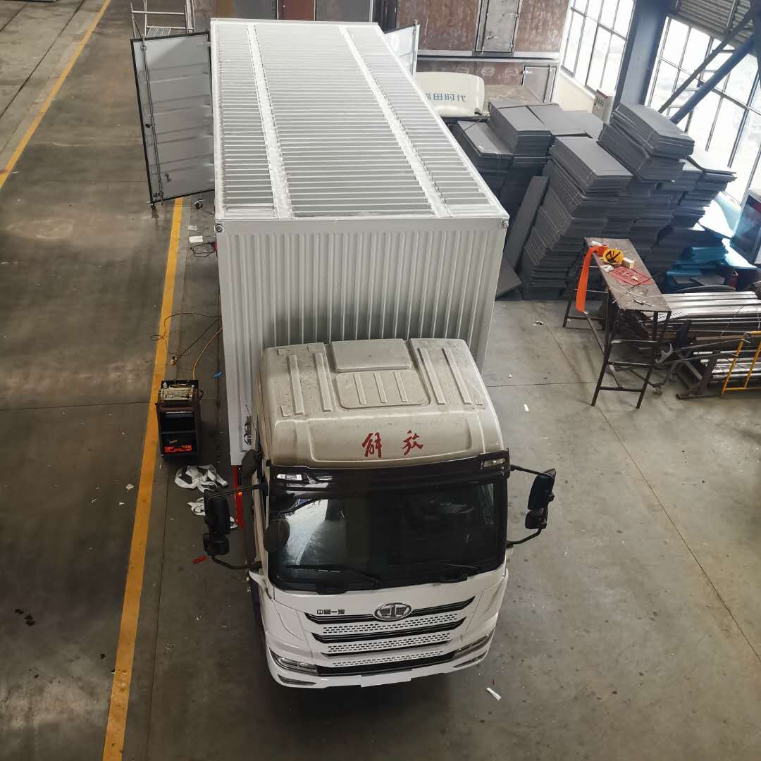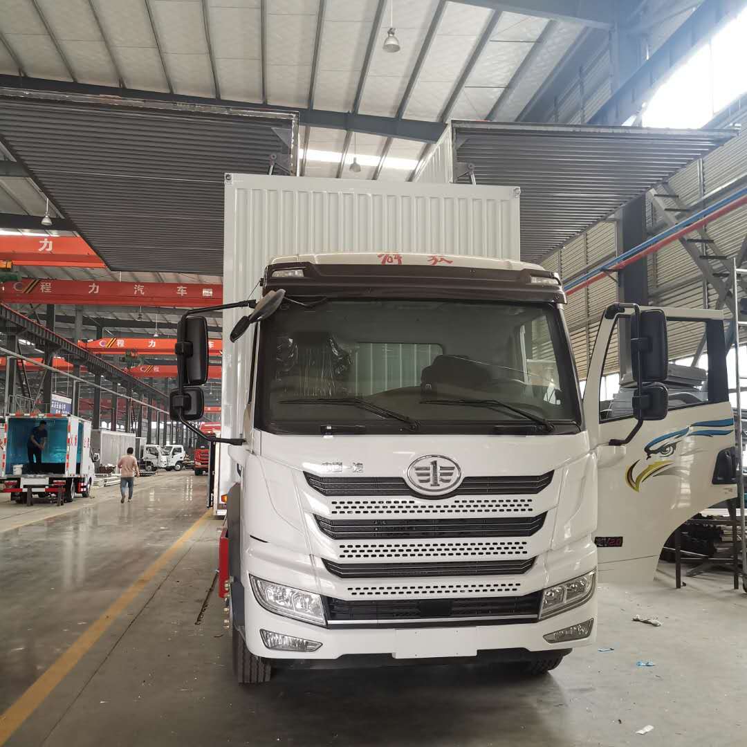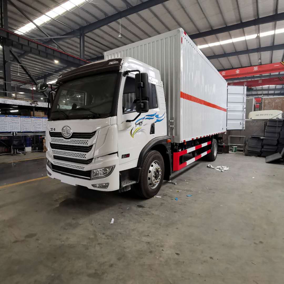 解放龍V翼展式危險(xiǎn)品車嚴(yán)格按照公告尺寸制作,外板采用1mm厚冷軋板有一次性成型的百葉窗,內(nèi)飾為導(dǎo)電性能良好的鋁板有透氣孔,內(nèi)襯為矩形管骨架牢靠穩(wěn)定,內(nèi)部填充為透氣防潮阻燃的擠塑板,四種材料經(jīng)現(xiàn)代工藝復(fù)合而成,廂體外部上下鋁合金型材包邊,底板和車廂前下部鋪橡膠皮,后門雙開(kāi),右側(cè)三個(gè)雙開(kāi)門,內(nèi)部有固定貨物的臥環(huán),車輛外部有靜電帶、滅火器、防火罩,車廂內(nèi)安裝煙霧報(bào)警器和門防盜報(bào)警器,嚴(yán)格按照國(guó)家危險(xiǎn)品相關(guān)法規(guī)張貼。