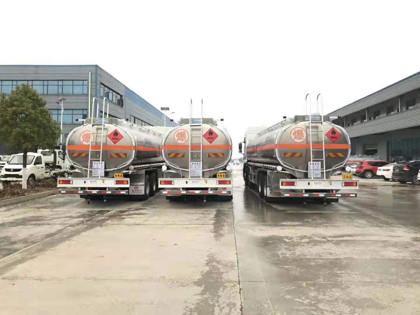 運(yùn)油車哪一款好?當(dāng)然要數(shù)前四后八油罐車,尤其是輕量化鋁合金油罐車。山東賀總在我司自提三臺東風(fēng)天龍前四后八鋁合金油罐車,以下是具體發(fā)車實(shí)拍: