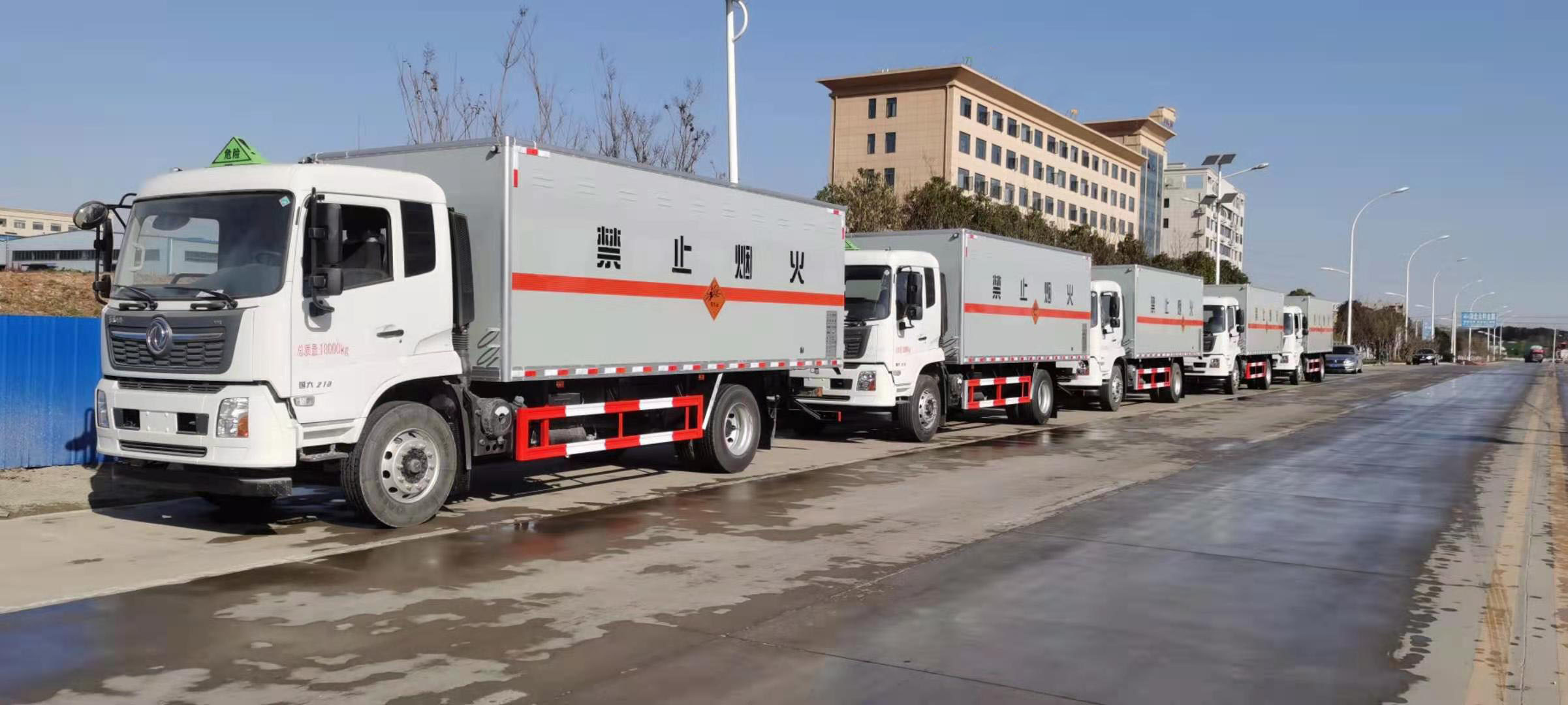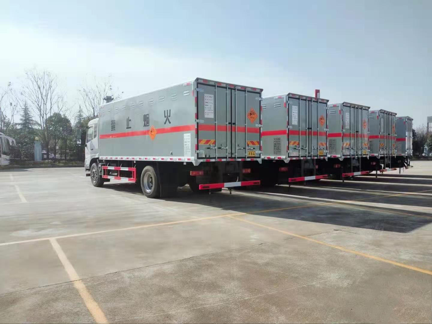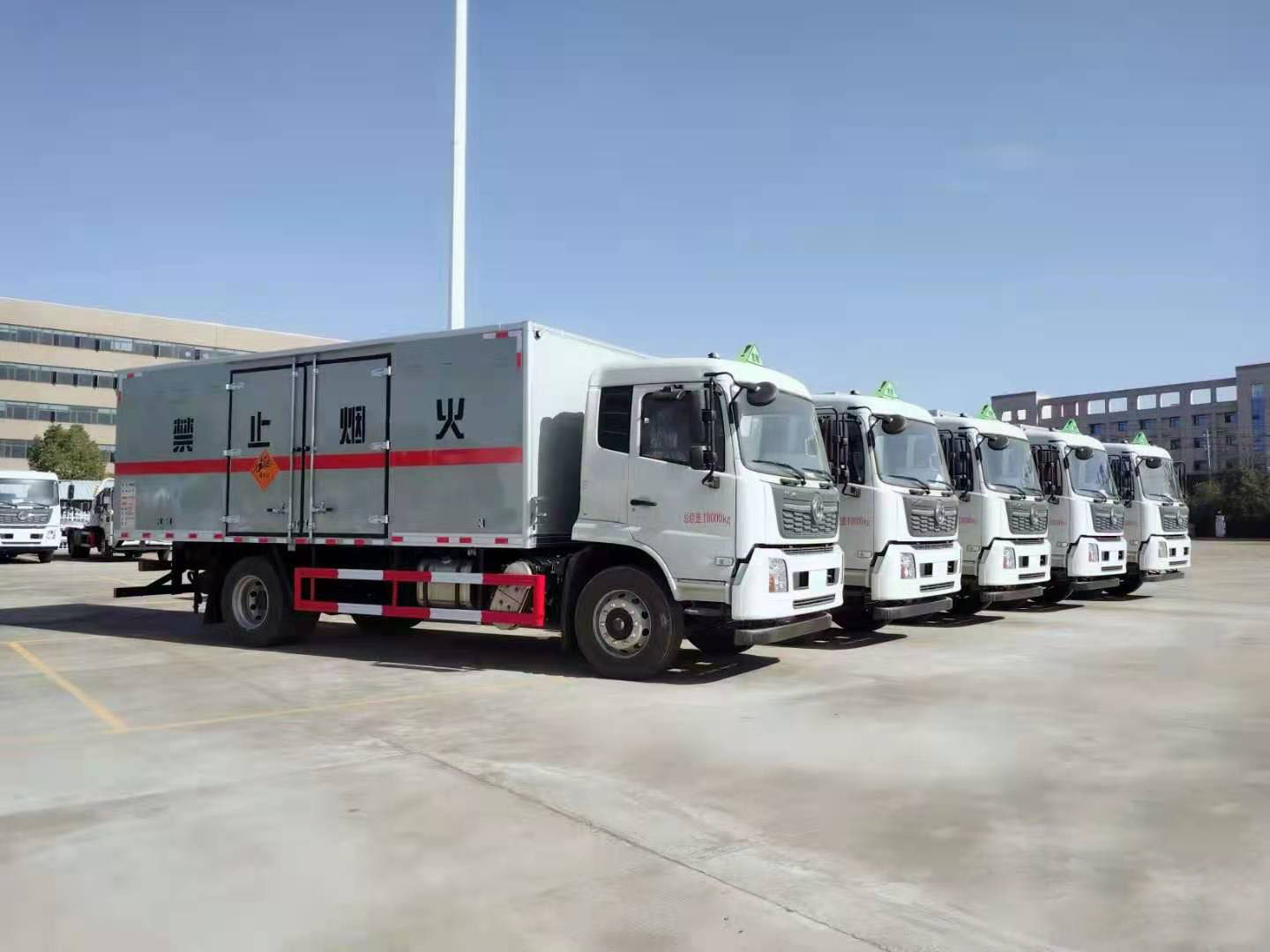 危險品運輸旺季來臨,購買車輛的客戶越來越多。近日,貴州陳總來我司自提了5臺東風天錦危險品車,以下是具體發車實拍: