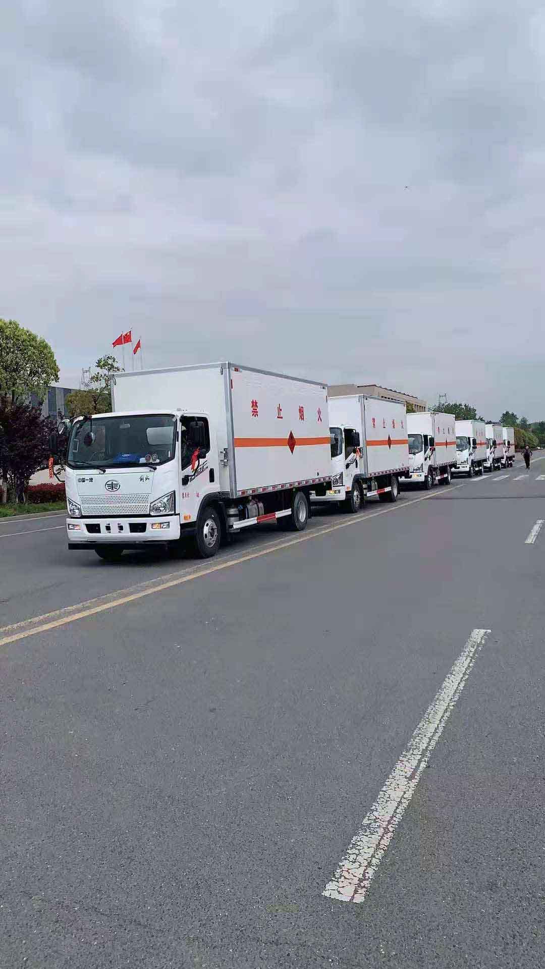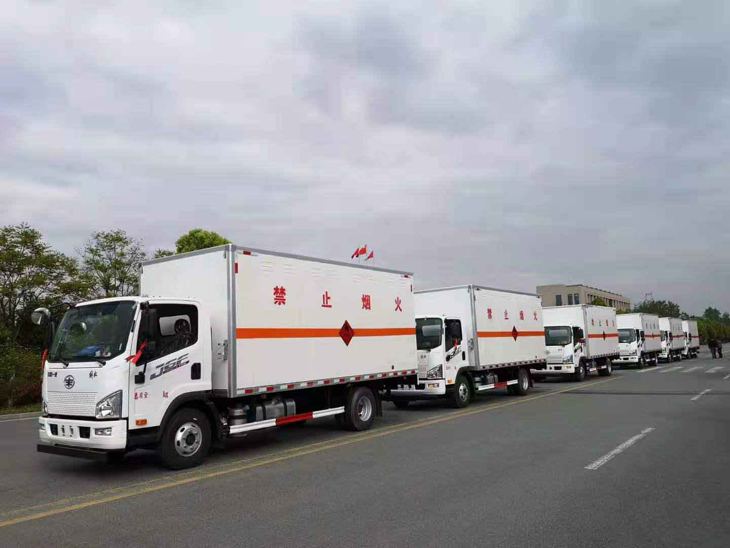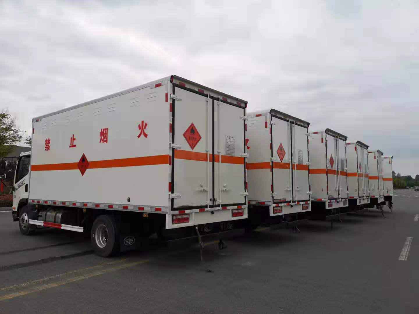 解放5米1危險品車采用復合板廂體,外冷軋板內鋁板,廂體外部上下鋁合金型材包邊,底板和車廂前下部鋪橡膠皮,后門雙開,右側帶雙開雙側門,內部有固定貨物的臥環,車輛外部有靜電帶、滅火器、防火罩,車廂內安裝煙霧報警器和門防盜報警器,嚴格按照國家危險品相關法規張貼。