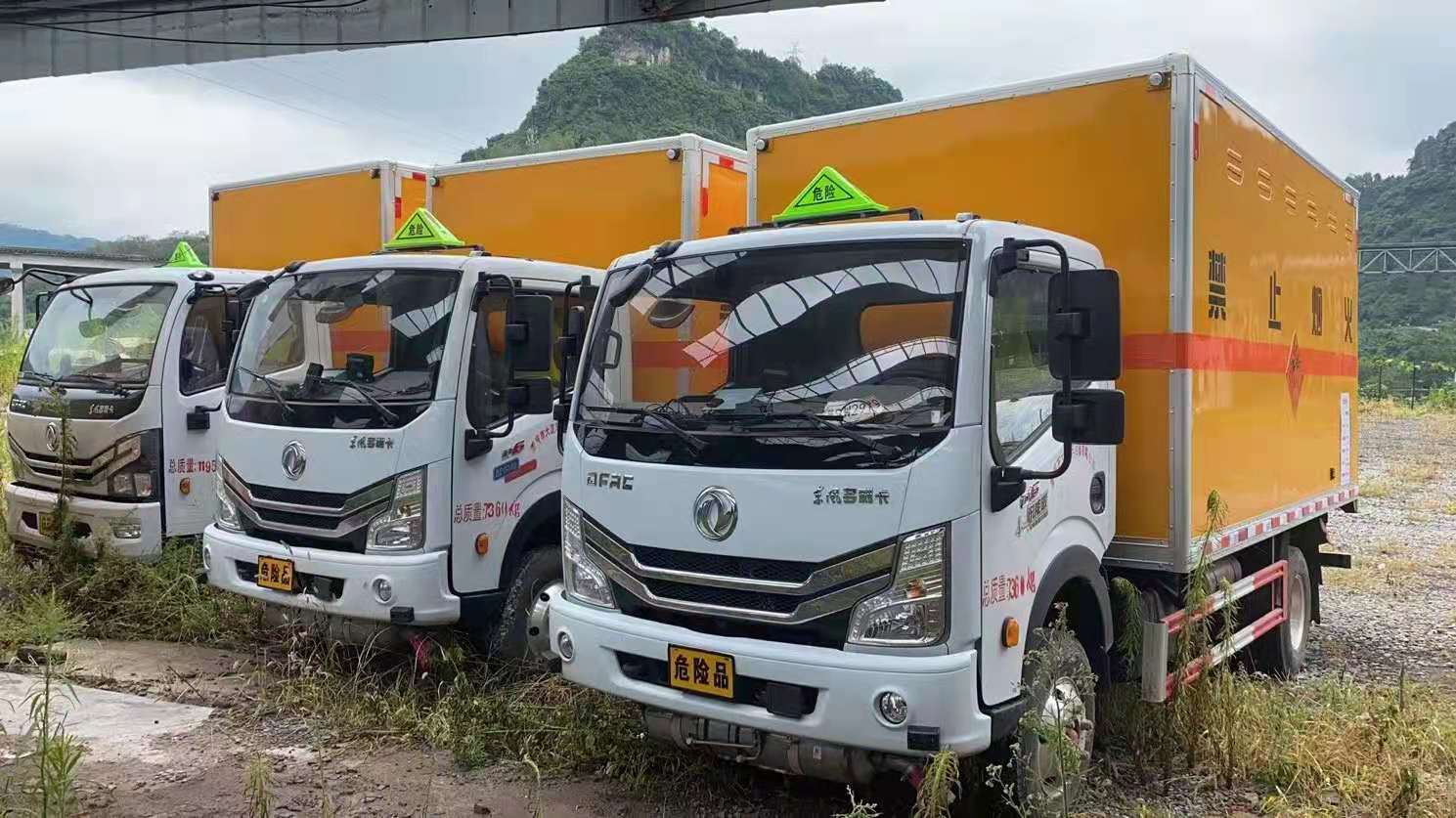 民爆物品運輸都少不了專用的車輛,尤其是東風系列車型。在眾多東風車型中,玉柴140馬力危險品車最受歡迎。近日,重慶張總在我司自提了三臺東風多利卡爆破器材運輸車,以下是客戶提車后的實拍圖片: