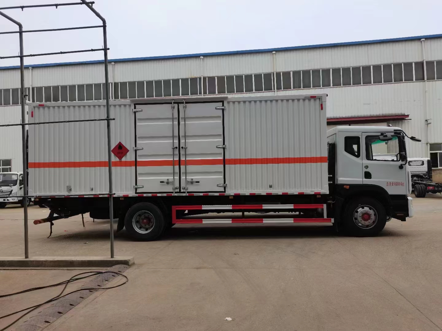 東風(fēng)D9國六瓦楞板危險(xiǎn)品車采用的是專用危化品底盤,可選康明斯220馬力或康明斯230馬力發(fā)動機(jī),該車匹配的是4.5噸前橋,9噸后橋(與天錦系列車型一致噸位,但是論價(jià)格東風(fēng)D9國六危險(xiǎn)品車更有優(yōu)勢)。該車選用的是5300mm軸距,貨箱尺寸可選6米8或7米6車型,尾部可選1.5噸或2噸尾板,箱體全部采用的是標(biāo)準(zhǔn)的碳鋼冷軋板折彎而成,箱體右側(cè)帶側(cè)門,方便側(cè)部上下卸貨。選擇該款車型的客戶主要注重的是性價(jià)比。該車車輛滿足的是10噸的額載,