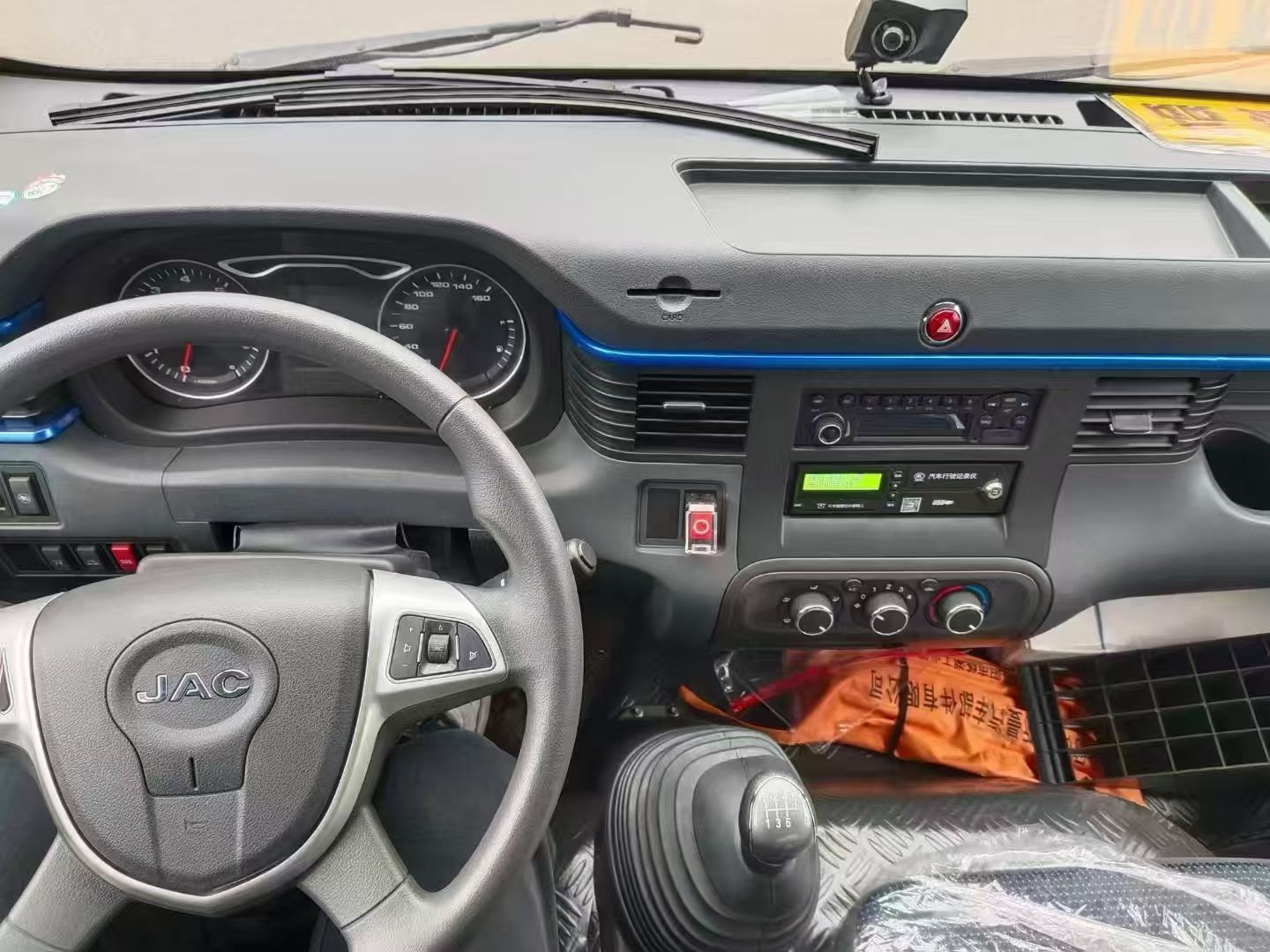 江淮駿鈴國六易燃氣體廂式車選用的是危化品底盤,可選150馬力發動機或者濰柴130馬力。定制的是鷹眼大燈,霧燈及輔助遠光燈,主后視鏡+廣角鏡,下視鏡、盲補鏡,減少視野盲區。江淮駕駛室集轎車化與舒適性于一體,寬度達1900,準乘3人,帶動力轉向、多功能方向盤,影音娛樂定速巡航,一鍵操控,中控臺的設計個性化十足,旋鈕式空調開關,原廠空調,電動門窗,中控鎖,大燈高度調節,后視鏡電加熱。搭載安徽康明斯2.2升130馬力發動機,星瑞5擋變速箱,標配斷氣剎,ABS,7.00鋼絲胎,24V雙電瓶,120L油箱,副梁采用710車用高強鋼,附件無焊接,使用工裝標準件連接。
