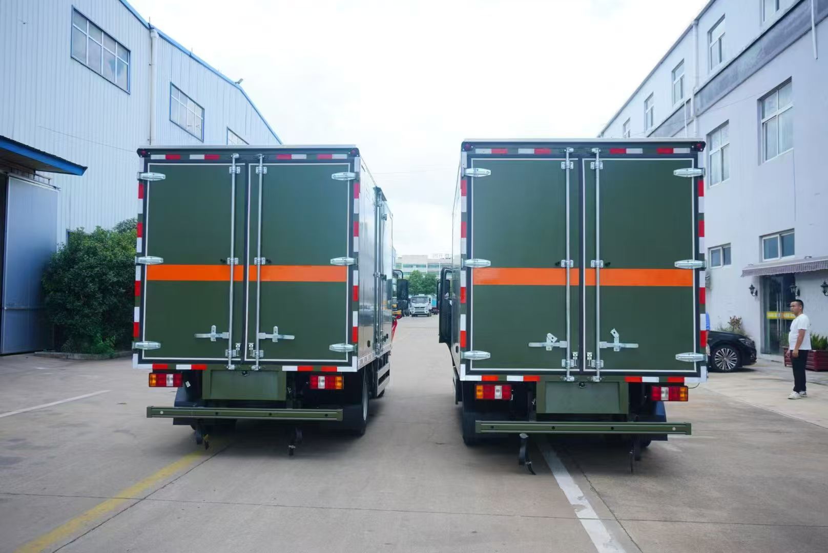運輸危險品車的都需要專用的車型,為了更統一標準化,用戶在定制車輛時都選擇了特定的顏色。以下是湖南徐總批量訂購的2臺江鈴凱運國六易燃液體廂式車,以下是詳細配置介紹: