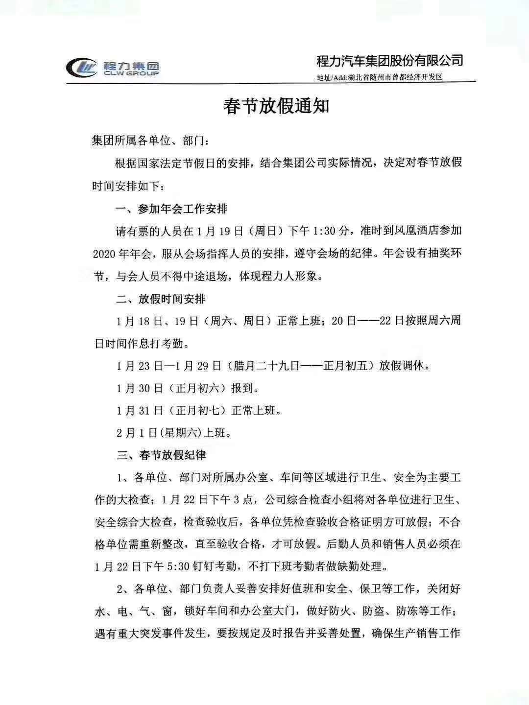 以上是公司放假通知,請知悉!需要購車的客戶,可提前與我司聯系,公司會為您妥善安排!感謝新老客戶的支持與信任,程力專汽提前祝大家新年快樂!