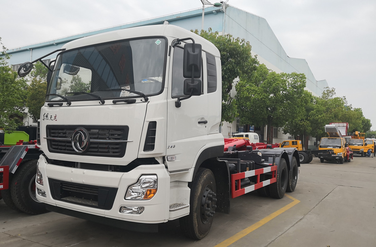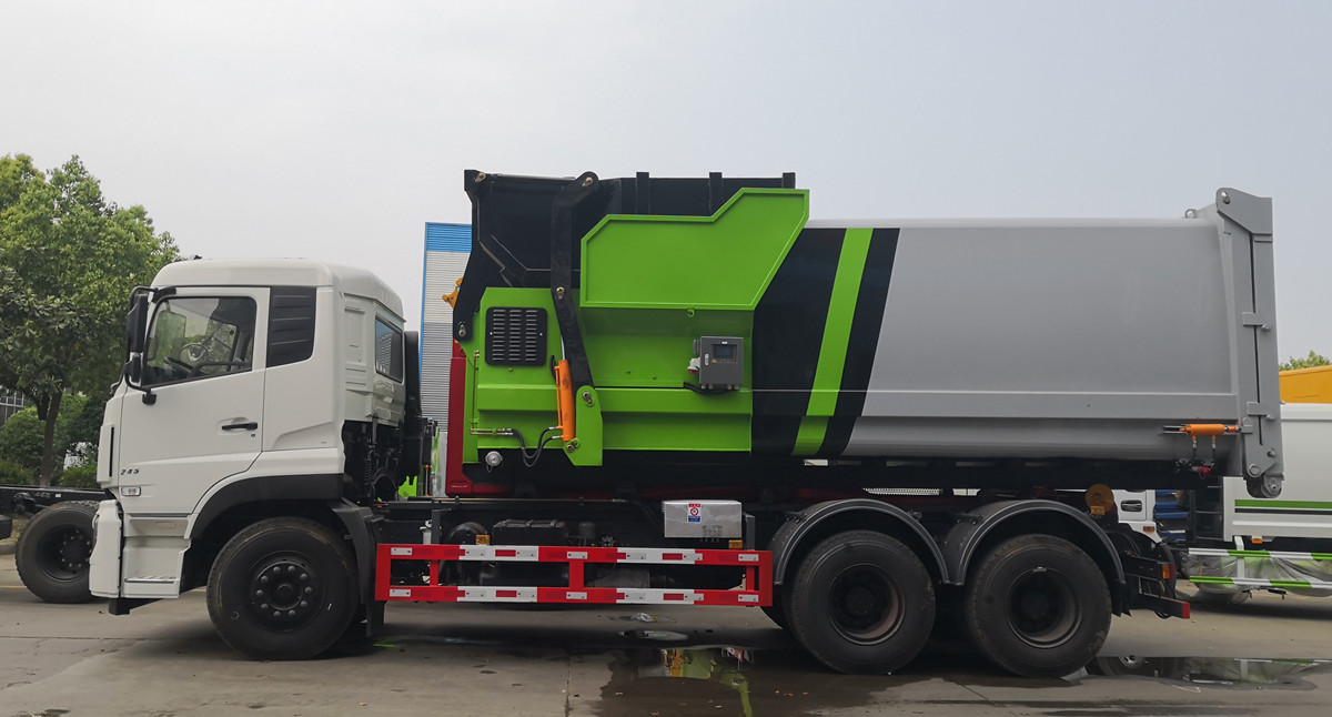 東風(fēng)天龍勾臂垃圾車帶移動(dòng)式壓縮垃圾站