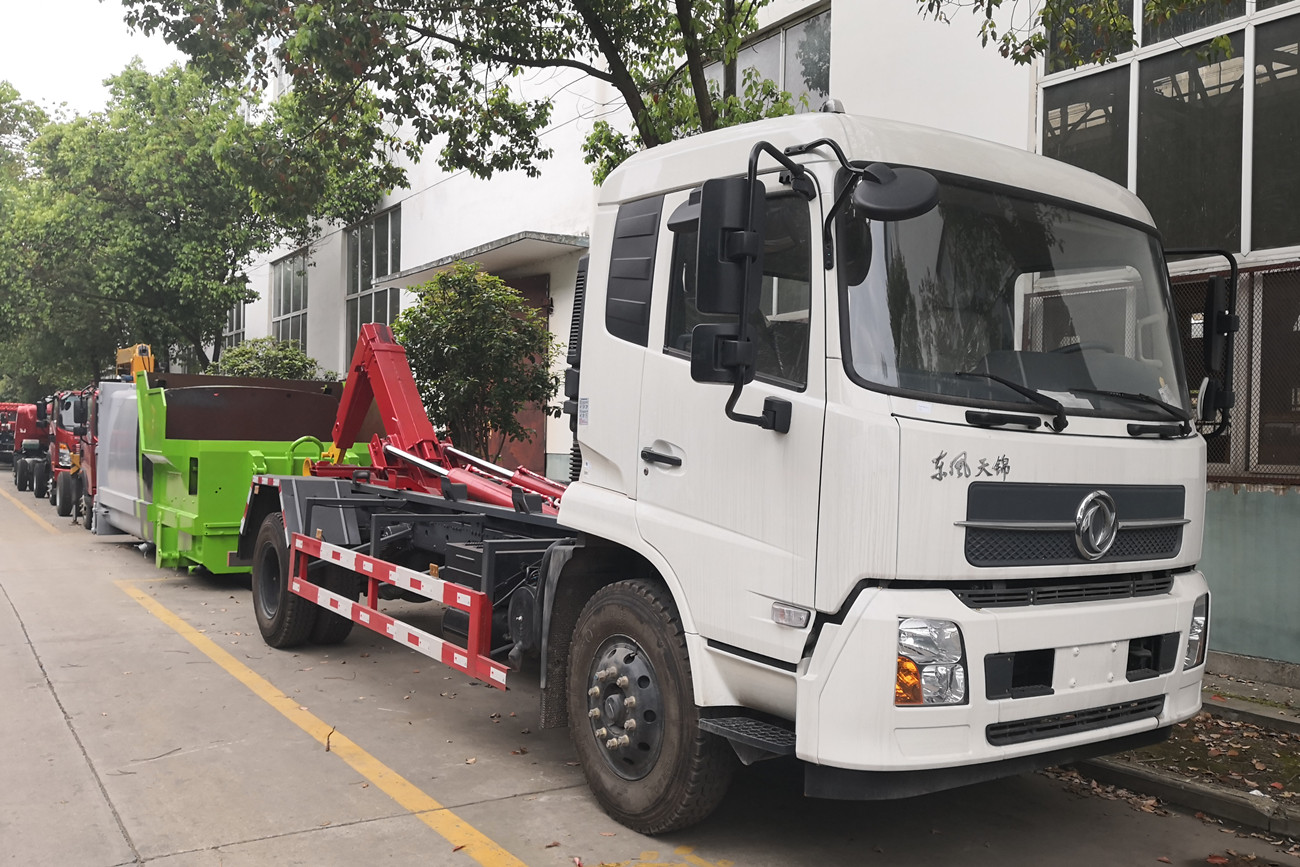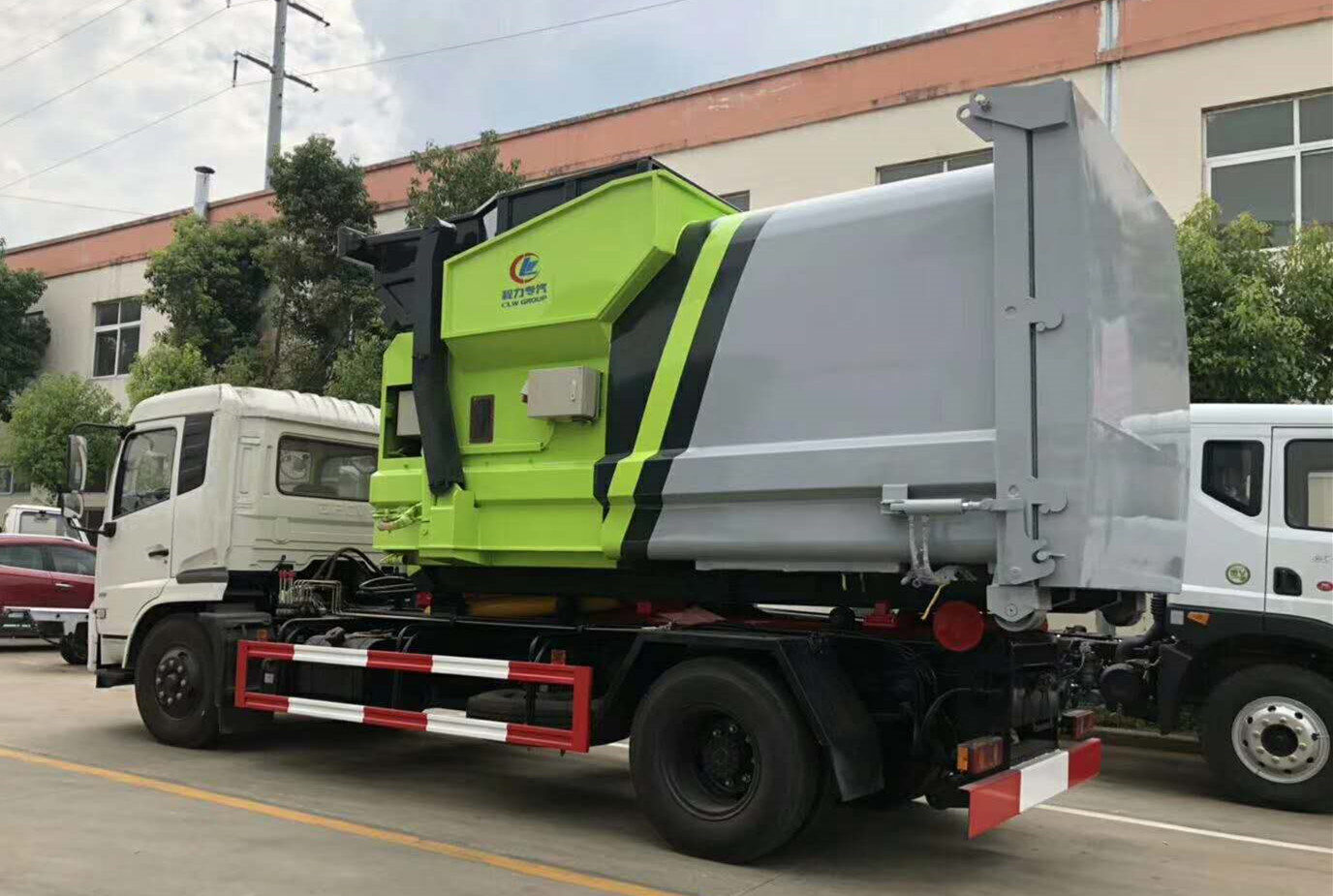 東風天錦勾臂垃圾車帶移動式壓縮垃圾站