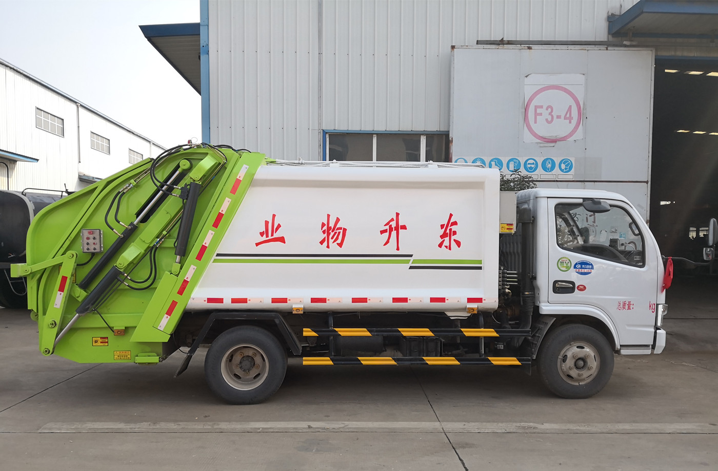 壓縮式垃圾車采用機電液一體化技術,借助機、電、液聯合自動控制系統,通過車廂、填裝器和推鏟等專用裝置,實現垃圾倒入、壓碎或壓扁、強力裝填,把垃圾擠入車廂并壓實和推卸。其主要特點是垃圾收集方式簡便、高效、具有自動反復壓縮以及蠕動壓縮功能,壓縮比高,裝載質量大,作業自動化,動力性、環保性好,整車利用效率高。