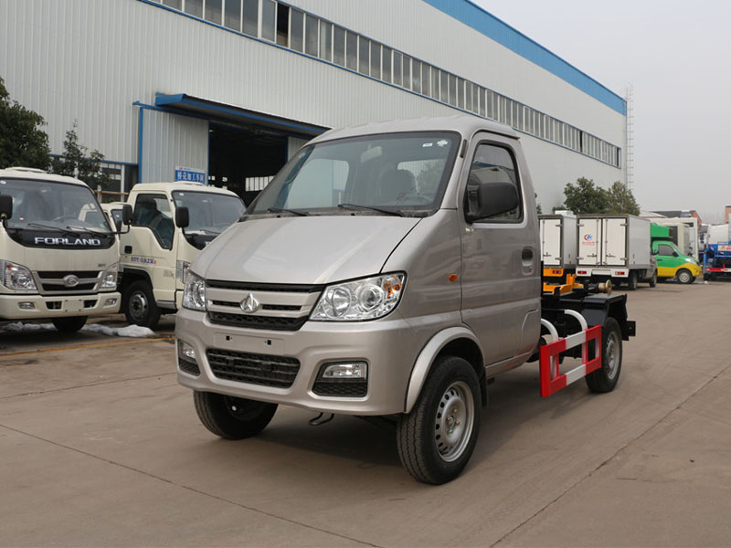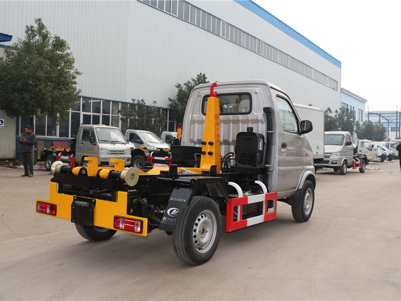 勾臂式垃圾車可將地下垃圾箱內的垃圾及垃圾箱一同拉至車上運走同時可自卸,且垃圾箱體采用液壓鎖緊或開啟,降 低了工人的勞動強度和改善了工作環(huán)境。該垃圾車的收運方式是目前世界上廣泛采用的垃圾收運方式,可以實現(xiàn)一車多箱,大大降低了配備成本和空間等等;其專用裝置的功能均以汽車發(fā)動機為動力,通過液壓機構手動或電控、氣控來實現(xiàn)。