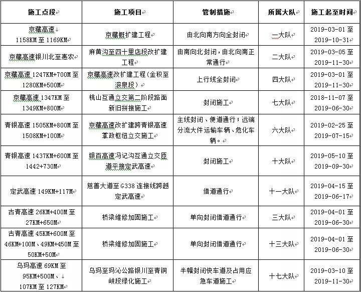 根據(jù)寧夏交警消息,寧夏境內(nèi)以下高速路段正在施工,請(qǐng)注意繞行。