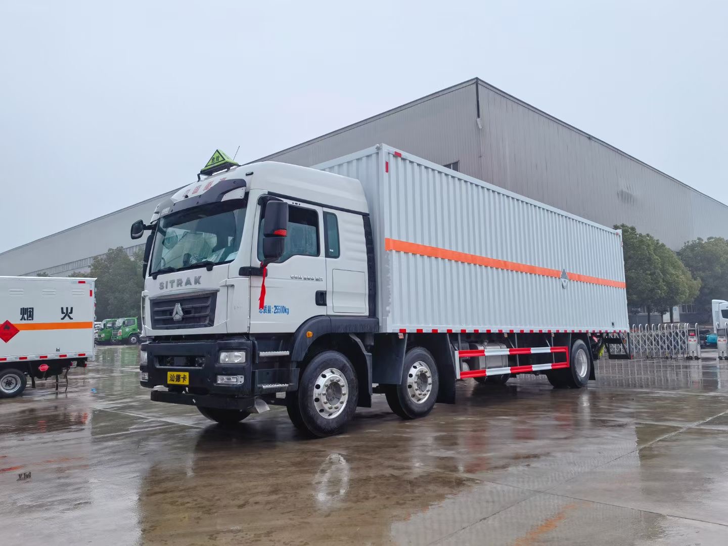 重汽汕德卡小三軸貨廂長(zhǎng)9.6米雜項(xiàng)危險(xiǎn)物品廂式運(yùn)輸車(chē)