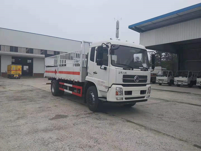 東風天錦氣瓶運輸車采用八檔變速箱、前橋5噸、后橋10噸、250mm車架、帶空調、ABS、10.00R20鋼絲胎、ABS、前盤后鼓、排氣管前置、限速、排氣制動,貨廂尺寸:8600×2450×600mm。廂體采用頂部不封閉,側板倉柵式的廂式車結構,外飾冷軋鋼板,廂體兩側分為兩段活動式結構可左右翻轉,該車廂整體可適用于各種氣罐、氣瓶直立運輸,煤氣罐兩層運輸,底板邊緣間斷式焊接固定臥環,方便固定捆綁氣瓶,操作方便。東風天錦氣瓶運輸車尾部帶液壓尾板,可選1噸-1.5噸尾板,客戶可進行自行選擇!