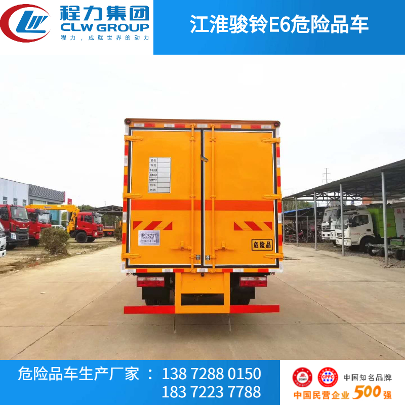 江淮E6危險品車配備滅火器,三角頂燈,靜電拖帶等,嚴格按照國家危險品法規(guī)進行危險品標識粘貼。目前底盤已到現貨,歡迎各新老客戶來電咨詢訂購!
