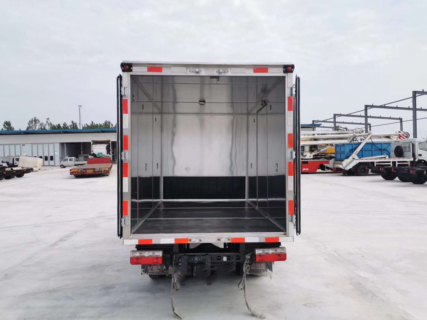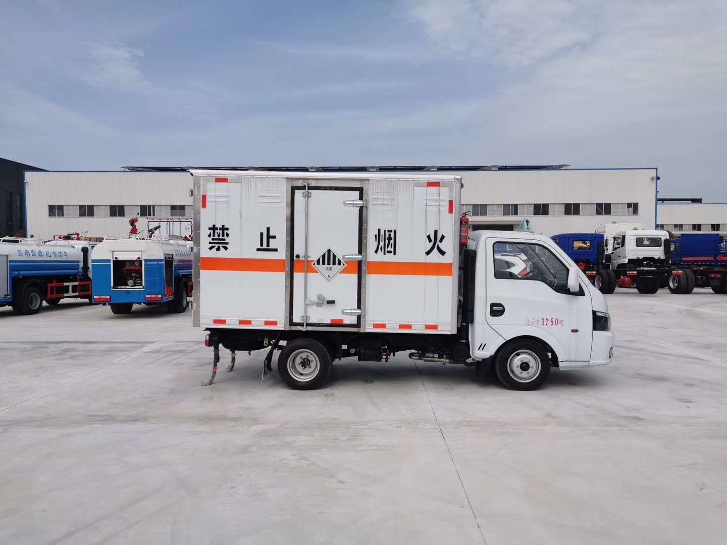 東風途逸雜項危險品車可運輸九類危險品,車廂采用防靜電防阻燃廂體,帶煙霧報警器、蜂鳴報警器,帶透氣孔、臥環。外板采用1mm厚冷軋板有一次性成型的百葉窗,內飾為導電性能良好的鋁板有透氣孔,內襯為矩形管骨架牢靠穩定,內部填充為透氣防潮阻燃的擠塑板,四種材料經現代工藝復合而成,廂體外部上下鋁合金型材包邊,底板和車廂前下部鋪橡膠皮,后門雙開,右側中部單開門,車輛外部有靜電帶、滅火器、防火罩,車廂內安裝煙霧報警器和門防盜報警器,嚴格按照國家危險品相關法規張貼。
