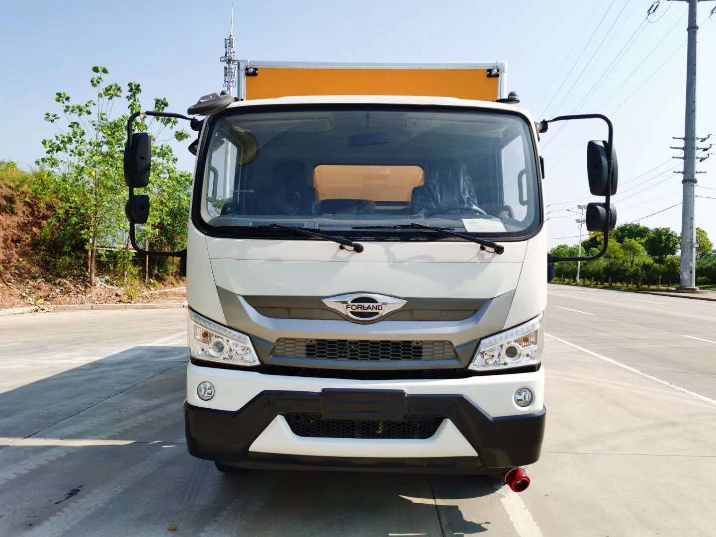 福田瑞沃ES國六爆破器材運(yùn)輸車外形尺寸為:7250*2250*3280mm,廂體尺寸為:5180*2100*2000mm,總質(zhì)量為11995kg,額定載質(zhì)量6080kg,整備質(zhì)量5720kg,廂體為雙層金屬骨架結(jié)構(gòu),外層為武鋼冷軋鋼板,中間為B1級阻燃泡沫,內(nèi)壁采用鋁合金板蒙面,并用鋁合金型材收邊。廂體兩側(cè)帶透氣孔,廂內(nèi)選裝固定運(yùn)載物的臥環(huán)或卡槽,設(shè)置對開后門,如需安裝防爆容器罐,則可以選裝前開門。