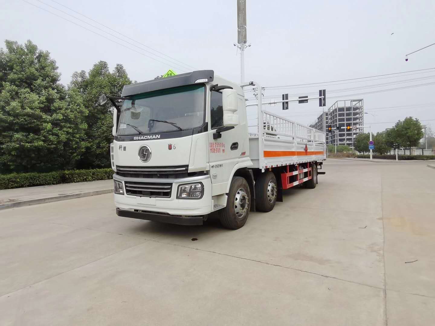 陜汽軒德三軸氣瓶運輸車采用倉欄式上裝結構,邊板對折八開門(單邊四開門),上部倉欄為活動式結構可左右翻轉(zhuǎn),外飾1.2mm厚冷軋鋼板,內(nèi)襯為矩形管骨架牢靠穩(wěn)定,底板為3mm厚花紋板(選裝5mm)。該車廂整體可適用于各種氣罐、氣瓶直立運輸,煤氣罐可兩層運輸,底板邊緣間斷式焊接固定臥環(huán),方便固定捆綁氣瓶,操作方便。