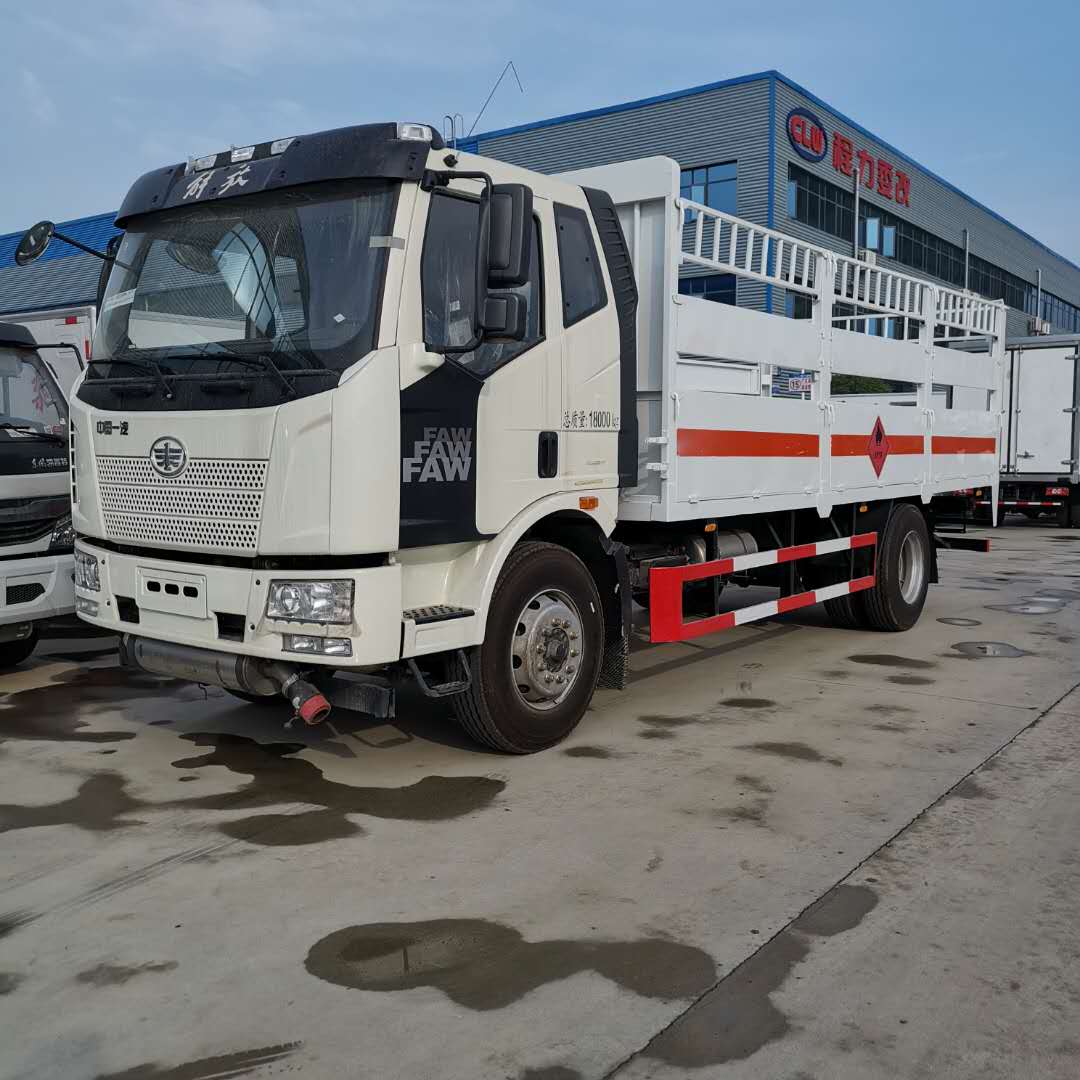 解放J6氣瓶運(yùn)輸車該車廂整體可適用于各種氣罐、氣瓶直立運(yùn)輸,煤氣罐兩層運(yùn)輸,底板邊緣間斷式焊接固定臥環(huán),方便固定捆綁氣瓶,操作方便。
