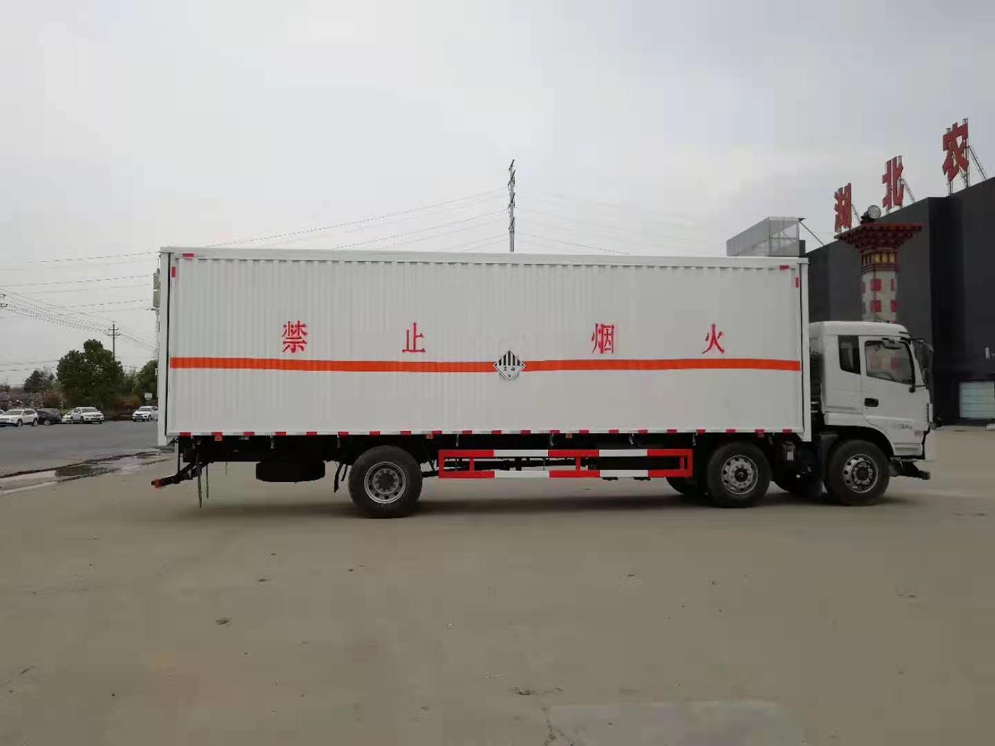 東風專底前四后四9米5危險品車整車型號:DLQ5250XZWEQ雜項危險物品廂式運輸車,采用東風前四后四平頭帶臥汽車,玉柴發動機220馬力國五排放標準,帶方向助力,空調,8檔變速箱,295真空綱絲胎,帶前盤式剎車,帶行車記錄儀,ABS,限速裝置,廂體采用外冷板內鋁板,中間4公分阻,帶煙霧報警器,防盜報警器,底部鋪靜電膠皮。帶危險品三角燈防火罩。有燃油安全達標,有環保,不超重帶空氣懸架,剎車片預警,安全帶提示,防爆胎裝置廂長9.5米。