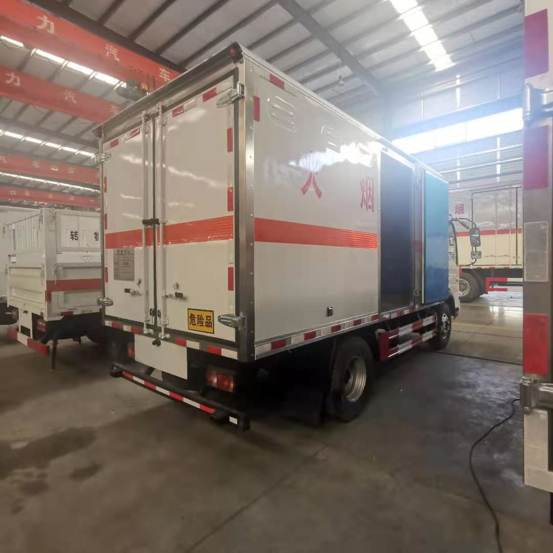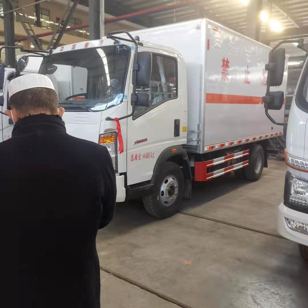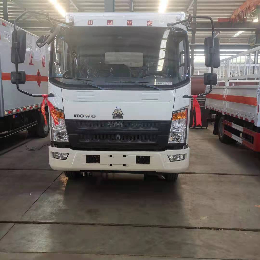 重汽豪沃4.2米易燃氣體廂式運輸車:配備重汽原廠豪沃危險品專用底盤,云內115馬力馬力發動機,6檔變速箱,7.50鋼絲輪胎,帶電動車窗,前盤制動,ABS,限速器,排氣管前置帶防火帽。