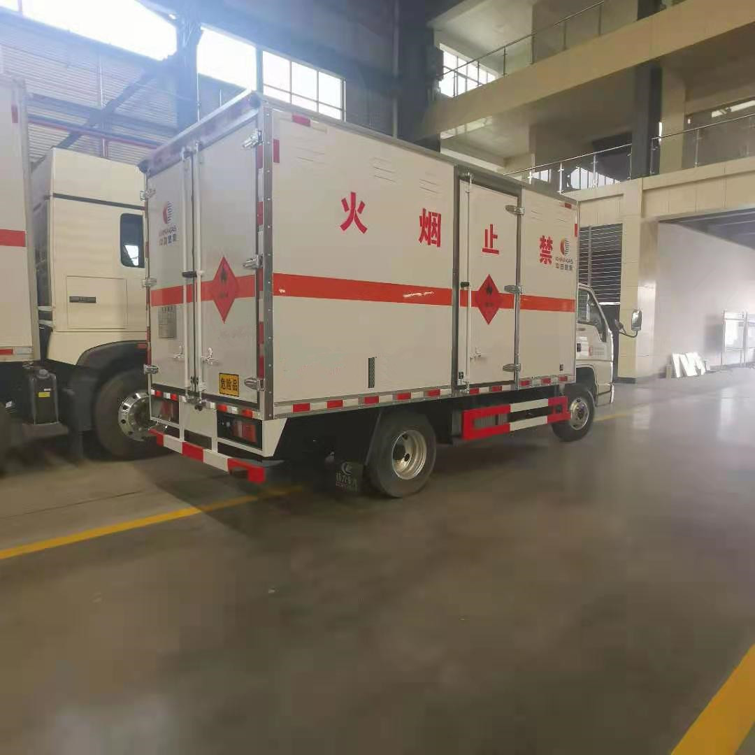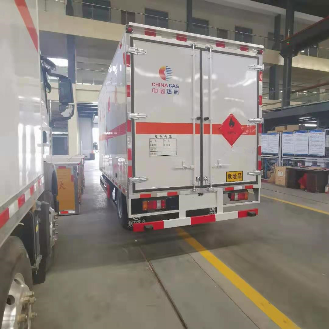 江鈴國六危險品車嚴格按照公告尺寸制作,底板上鋪靜電膠皮,配備滅火器,三角頂燈,靜電拖帶等,嚴格按照國家危險品法規進行“易燃氣體”標識粘貼等。廂體嚴格按照公告尺寸及外觀制作。危險品車廠家定制熱線:13872880150陳經理/18372237788楊經理,公司網站:www.88406.cn,程力專汽愿竭誠為您服務!廂體外板采用1.2mm厚冷軋板,上部留有一次性沖壓成型的百葉窗,內飾導電性能良好的鋁板并帶有有透氣孔,內襯矩形管骨架牢靠穩定,內部填充透氣防潮阻燃的泡沫板,四種材料經現代工藝復合加工而成;廂體外部上下鋁合金型材包邊,底板和車廂前下部鋪設防靜電橡膠皮,內部安裝有固定貨物的臥環,四周安裝防撞護板,廂體一側可選裝側開門。