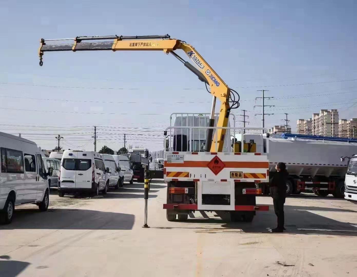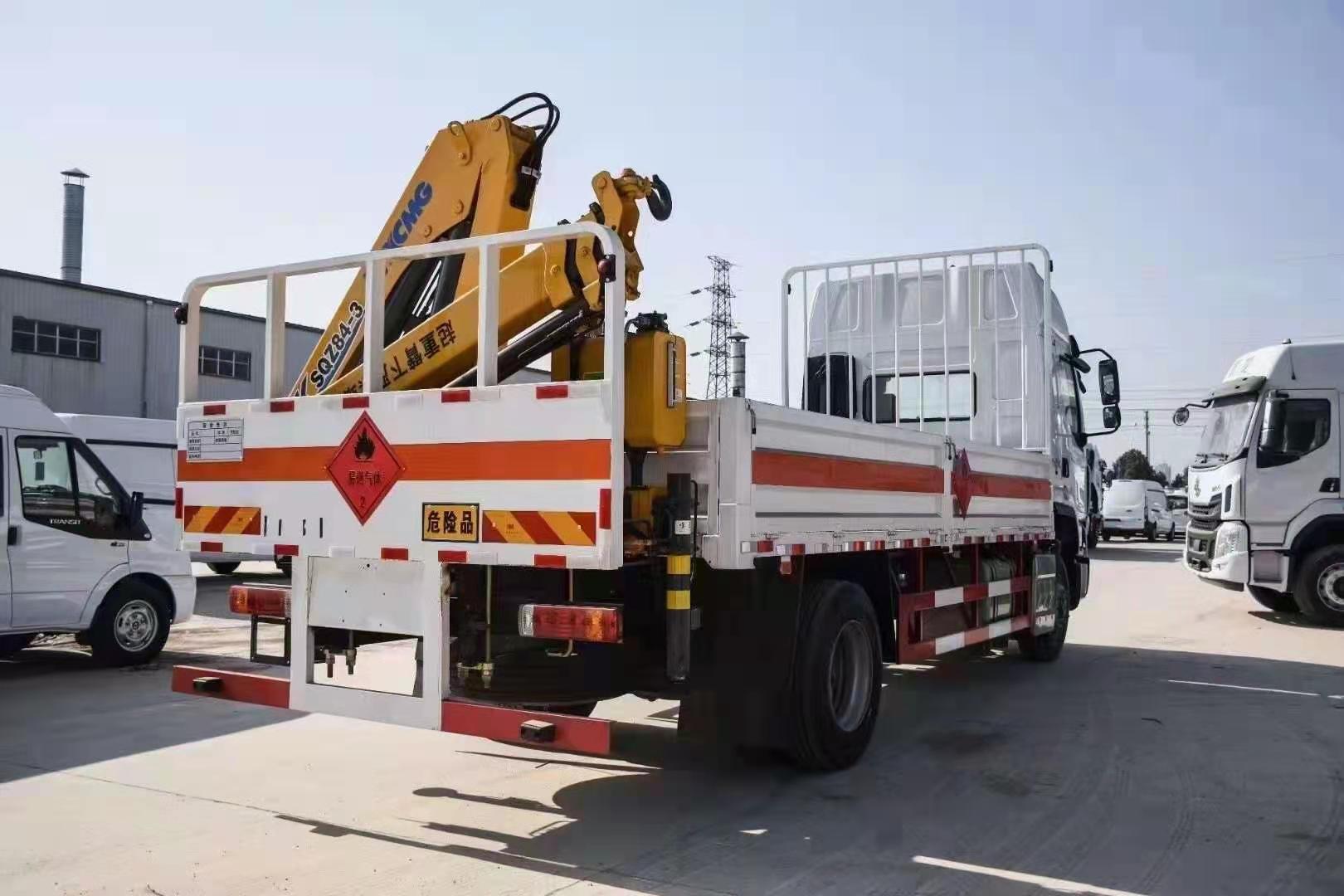 東風柳汽單橋國六帶4噸3節折臂吊氣瓶車采用雙組份丙烯酸油漆,固含量高,漆膜硬度可達到2H,高硬度高彈性戶外7-8年的保光保色期限,耐候性強耐磨耐腐蝕抗氧化。廂體底盤采用無廢料拼接,密封性更好。可有效防止運載物滲漏。同時無底料拼接可以使貨物受力更均勻,不易變形,經久耐用。廂體底部與廂體前部鋪設有防阻燃導靜電膠板,與底盤等電位連接,可防止靜電火花產生和車輛靜電及時釋放,提高整車的安全性能。底盤大梁與橫梁采用槽鋼連接。擁有相對更好的韌性,重壓之后保持不易變形,具有良好的承載能力。