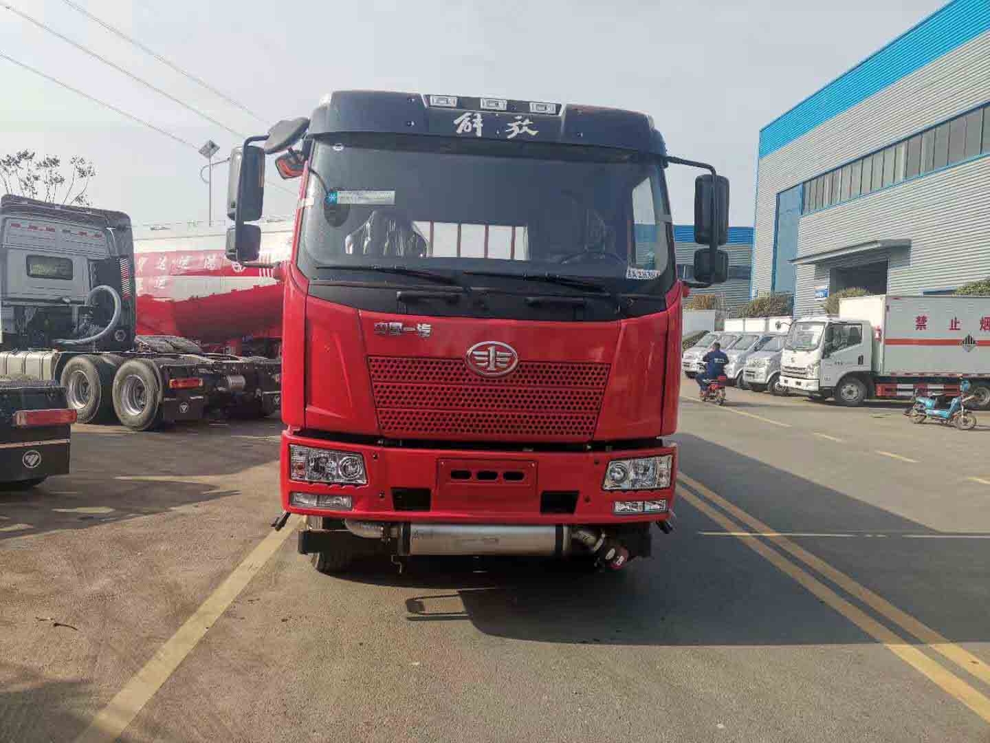 解放J6整車紅色氣瓶運輸車采用2017款J6L半浮平頂小排半駕駛室、手動玻璃升降、手動后視鏡、駕駛員座椅為機械減振座椅、單DIN北斗兼容車載系統(觸摸屏)、中間座椅、電源總開關控制開關,大柴CA4DK1-18E51(FCRI+SCR氣驅),變速箱CA6T138變速器(右側法蘭輸出取力器),4.875,11R22.5型18層級無內胎,237×75×7,自動空調、鐵保險杠、手動液壓舉升裝置、150L鋁油箱、懸架3/-(4氣囊)、前盤式制動器、車輛限速裝置、后處理前置、排氣火花熄滅器、后懸為2050mm、整車配備靜電拖地帶1根、駕駛室帶2kg干粉滅火器1個、前下防護裝置、檢測接頭、鋁合金貯氣筒、發動機體現5萬公里長換油周期、右轉彎音響提示裝置、T-box1.1、安全帶佩戴提醒、制動器襯片更換報警、爆胎應急安全裝置