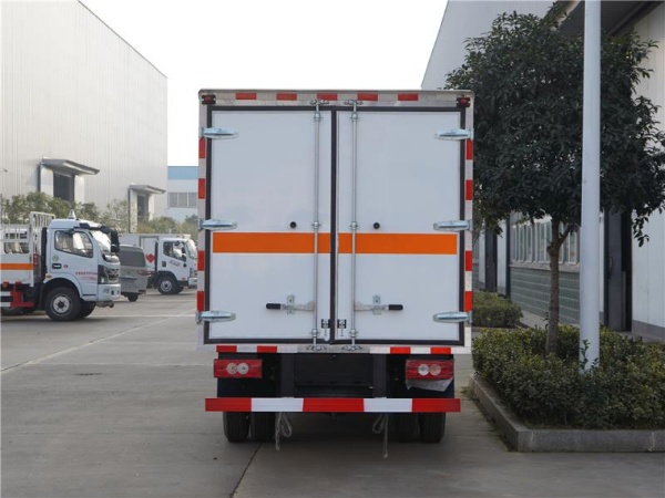 福田小卡危險品車廂體為雙層金屬骨架結構,外冷軋鋼板內飾鋁板,內壁采用鋁合金板蒙面,夾層為隔熱阻燃材料填充,廂體內部做通風窗口,廂體內部做防靜電處理,廂體底部鋪導靜電膠板,車輛副梁配備導靜電帶,廂體內襯壁裝單排臥環,廂體內頂部安裝氣體報警器,廂體安裝防盜報警器,隨車配備手提滅火器,危險品三角頂燈,防護帽等備,嚴格按照國家危險品法規進行易燃氣體標識粘貼等。隨車提供資料:機動車上戶發票,整車合格證,底盤合格證,隨車工具,服務手冊,保修手冊。