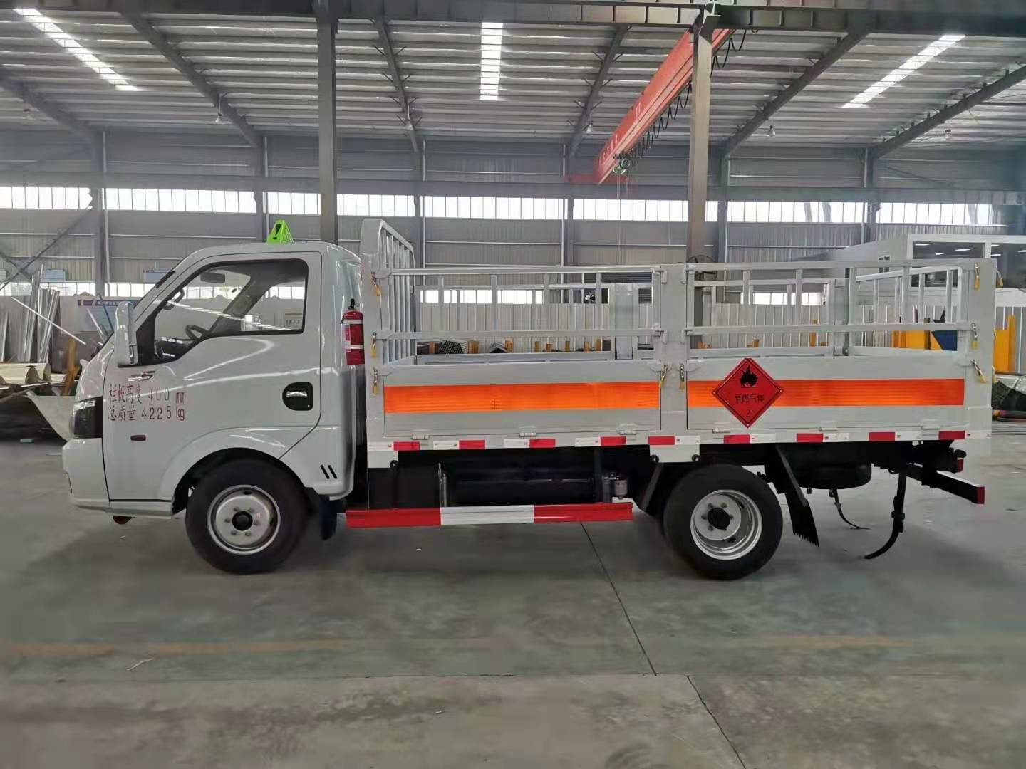 國(guó)六東風(fēng)途逸柴油氣瓶車(chē)箱體采用廂式欄板車(chē)結(jié)構(gòu),外厚度為1.1毫米厚度武鋼冷軋鋼板(或沖壓成瓦楞板,以公告為準(zhǔn)),內(nèi)加強(qiáng)“幾”字型加強(qiáng)梁,車(chē)體底板加強(qiáng)處理并做防靜電處理。車(chē)體的左側(cè)、右側(cè),和后欄板栓鉤結(jié)構(gòu),可向下打開(kāi),方便上下貨物,車(chē)體為空曠式車(chē)型,大大減少了運(yùn)輸物品因?yàn)楠M窄空和強(qiáng)烈碰撞產(chǎn)生氣瓶爆炸的危險(xiǎn)性,箱體外觀涂裝白色油漆,在欄板的中間位置粘貼橙色的危化車(chē)標(biāo)帶,并在車(chē)體的左、右、后部粘貼“易燃?xì)怏w”或“不燃?xì)怏w”標(biāo)識(shí)。駕駛室內(nèi)部配備兩只滅火器,后保險(xiǎn)杠處安裝防追尾事故的緩沖固定塊。此款車(chē)輛屬于國(guó)家規(guī)定的危險(xiǎn)品二類倉(cāng)欄式運(yùn)輸車(chē)。廂體內(nèi)部有固定貨物的臥環(huán),車(chē)輛外部有靜電帶、滅火器、防火罩,車(chē)廂內(nèi)安裝煙霧報(bào)警器和門(mén)防盜報(bào)警器,嚴(yán)格按照國(guó)家危險(xiǎn)品相關(guān)法規(guī)張貼。