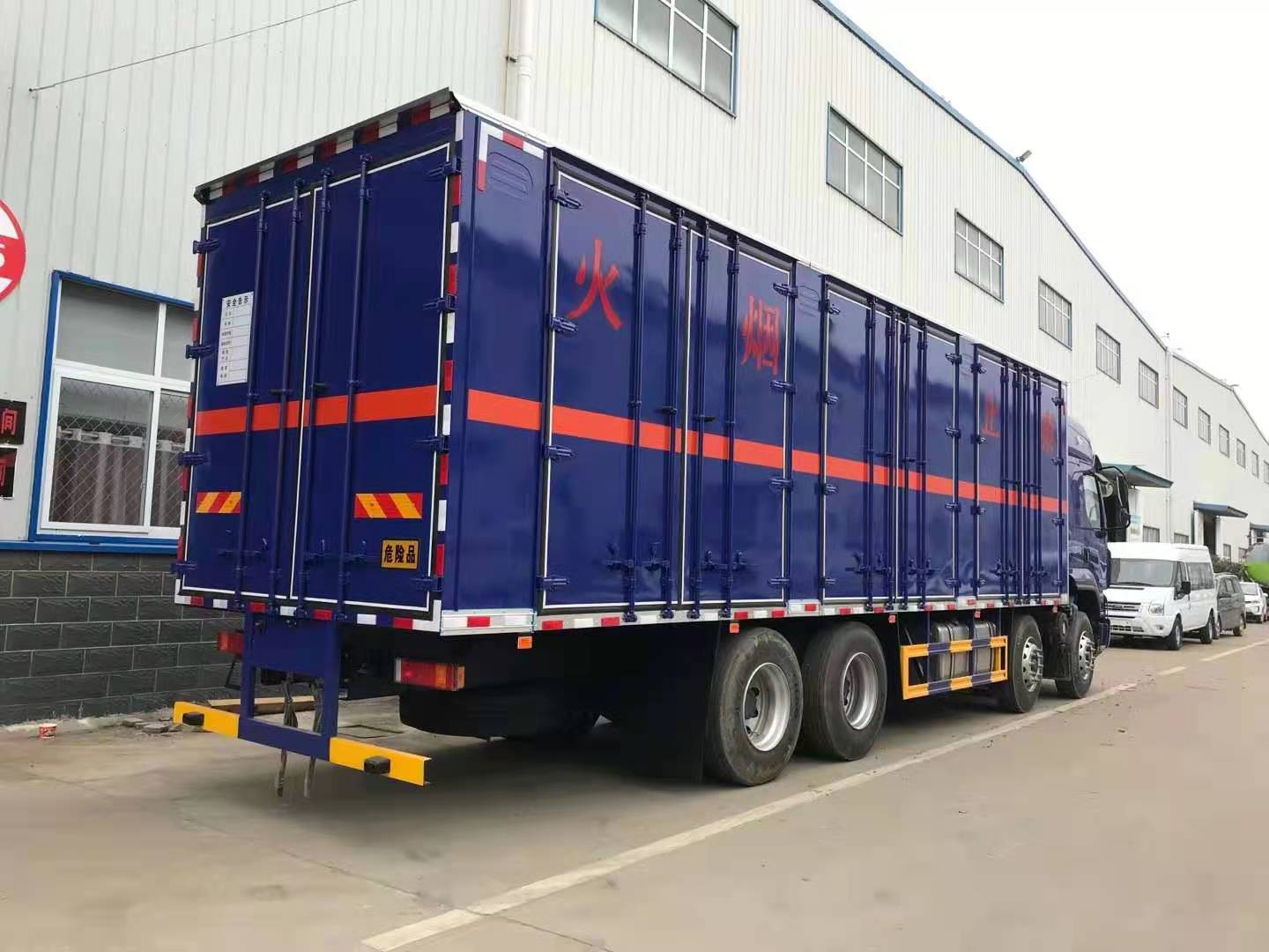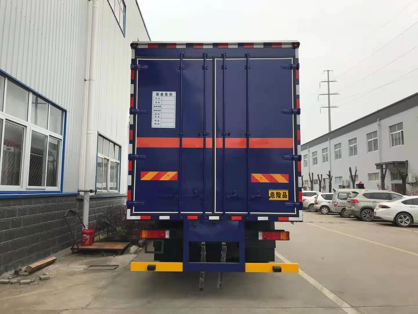 柳汽乘龍前四后八帶三開(kāi)側(cè)門(mén)危險(xiǎn)品車嚴(yán)格按照公告尺寸制作,外板采用 1mm 厚冷軋板有一次性成型的百葉窗,內(nèi)飾為導(dǎo)電性能良好的鋁板有透氣孔,內(nèi)襯為矩形管骨架牢靠穩(wěn)定,內(nèi)部填充為透氣防潮阻燃的擠塑板,四種材料經(jīng)現(xiàn)代工藝復(fù)合而成,廂體外部上下鋁合金型材包邊,底板和車廂前下部鋪橡膠皮,后門(mén)雙開(kāi),右側(cè)中部?jī)蓚(gè)雙開(kāi)門(mén),內(nèi)部有固定貨物的臥環(huán),車輛外部有靜電帶、滅火器、防火罩,車廂內(nèi)安裝煙霧報(bào)警器和門(mén)防盜報(bào)警器,嚴(yán)格按照國(guó)家危險(xiǎn)品相關(guān)法規(guī)張貼。廂體內(nèi)部安裝便于可固定貨物的卡槽,底板為3mm鋼板上面鋪防靜電膠皮,靜電拖地帶,滅火器兩個(gè),危險(xiǎn)品三角頂燈,防火帽,廂體顏色白色,其他嚴(yán)格按公告制作。 底板為3mm鋼板上面鋪防靜電膠皮,靜電拖地帶,滅火器兩個(gè),危險(xiǎn)品三角頂燈,防火帽,廂體顏色白色,其他嚴(yán)格按公告制作。