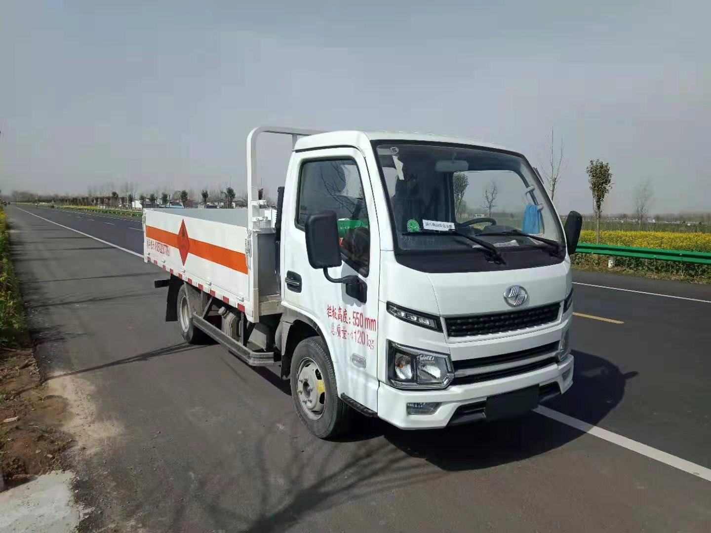 躍進柴油3.65米低欄板氣瓶運輸車廂體邊板為平板可活動,邊板為雙層鐵皮,廂體內部安裝便于可固定貨物的卡槽,上部帶花籃(可拆卸),中部立柱,立柱為活動式,底板為3mm鋼板上面鋪防靜電膠皮,靜電拖地帶,滅火器兩個,危險品三角頂燈,防火帽,廂體顏色白色,其他嚴格按公告制作。