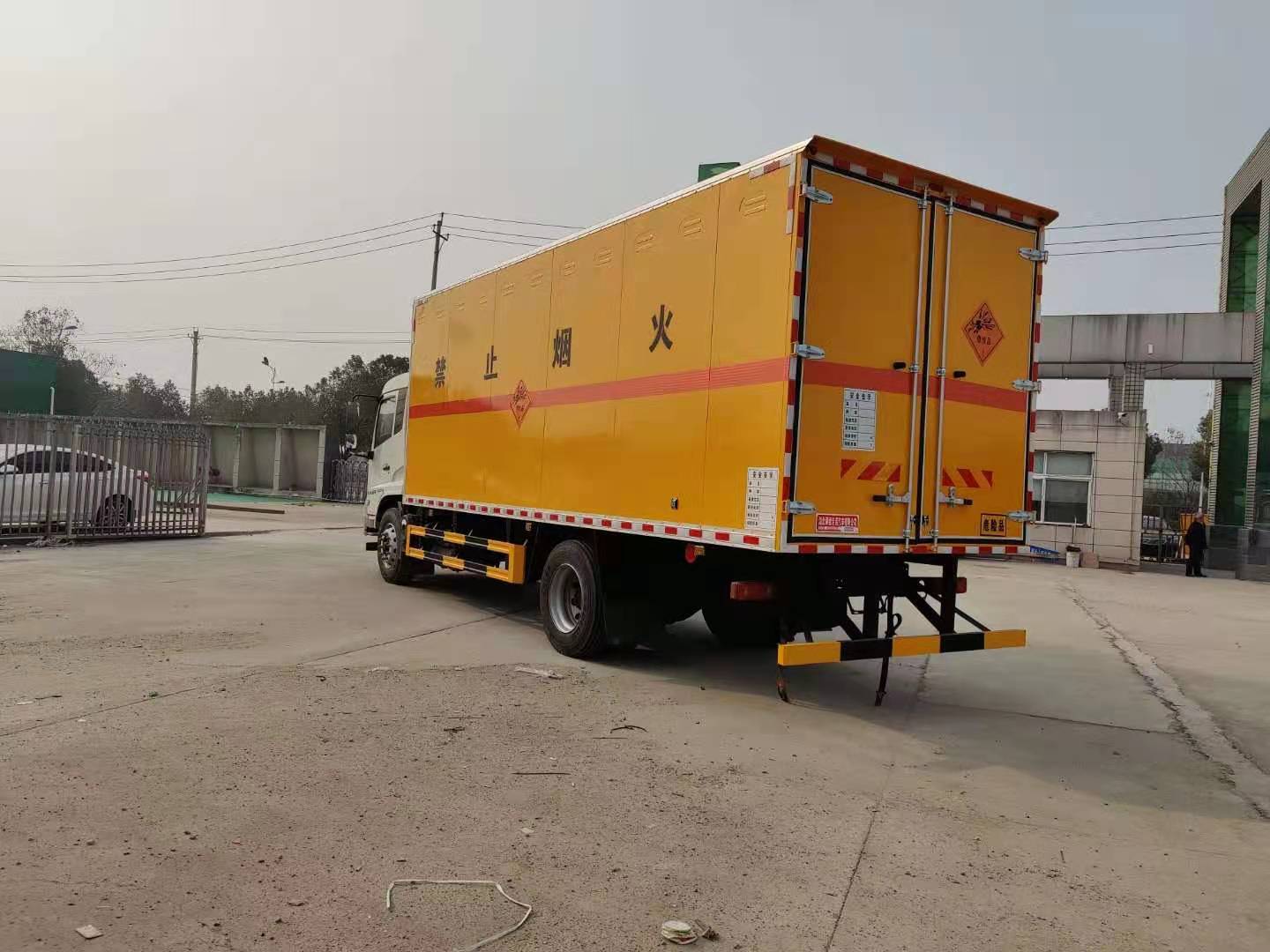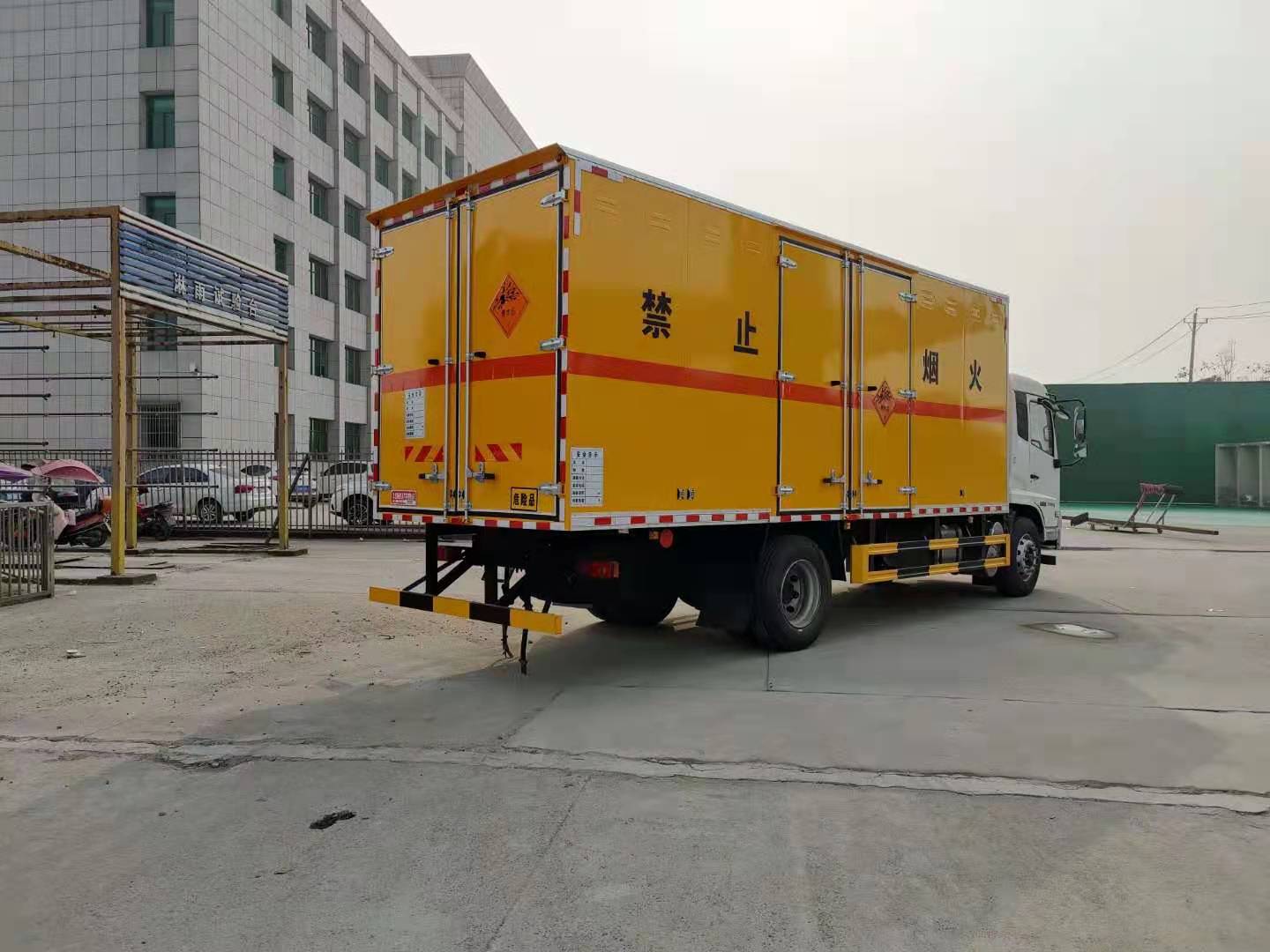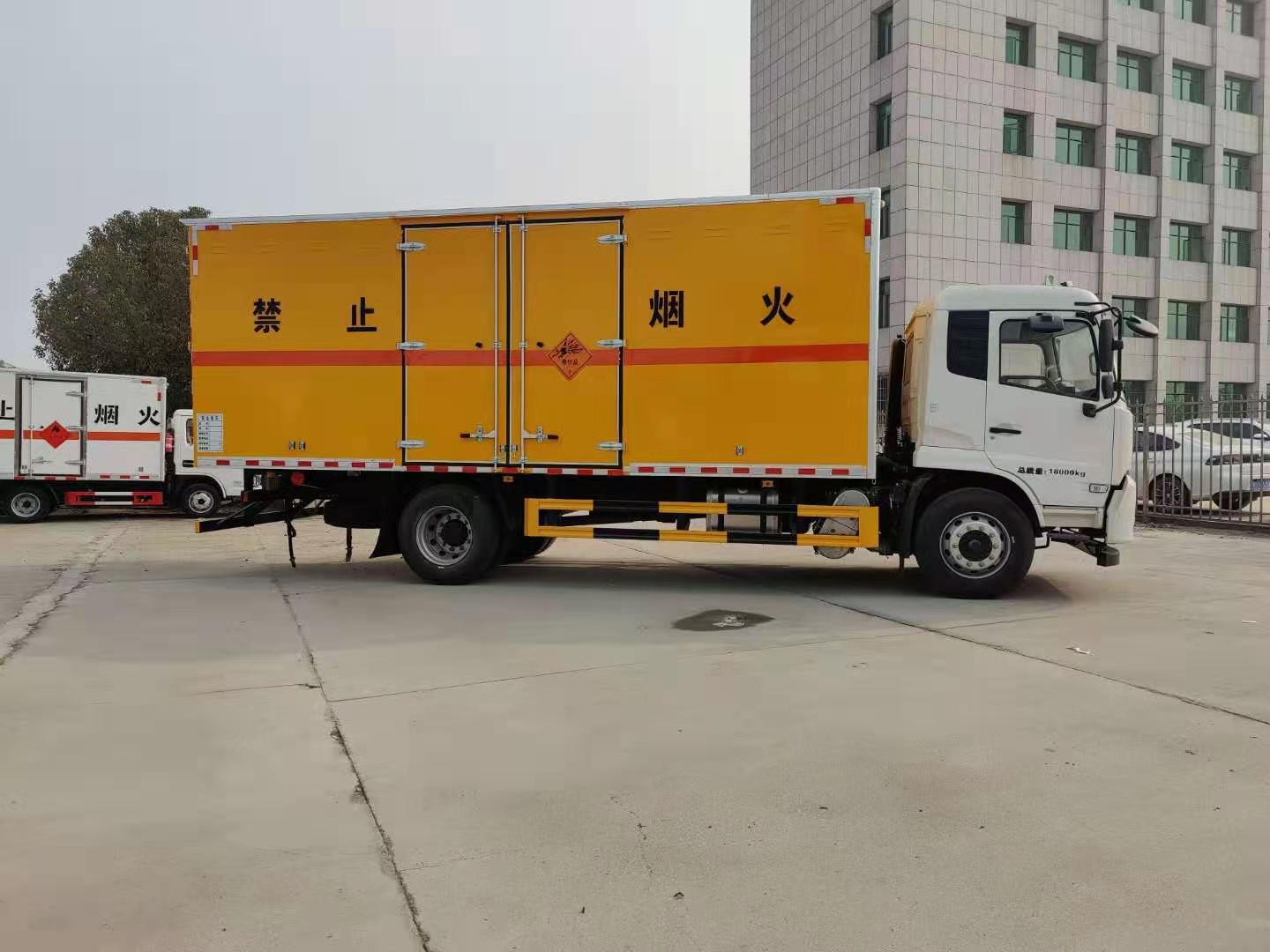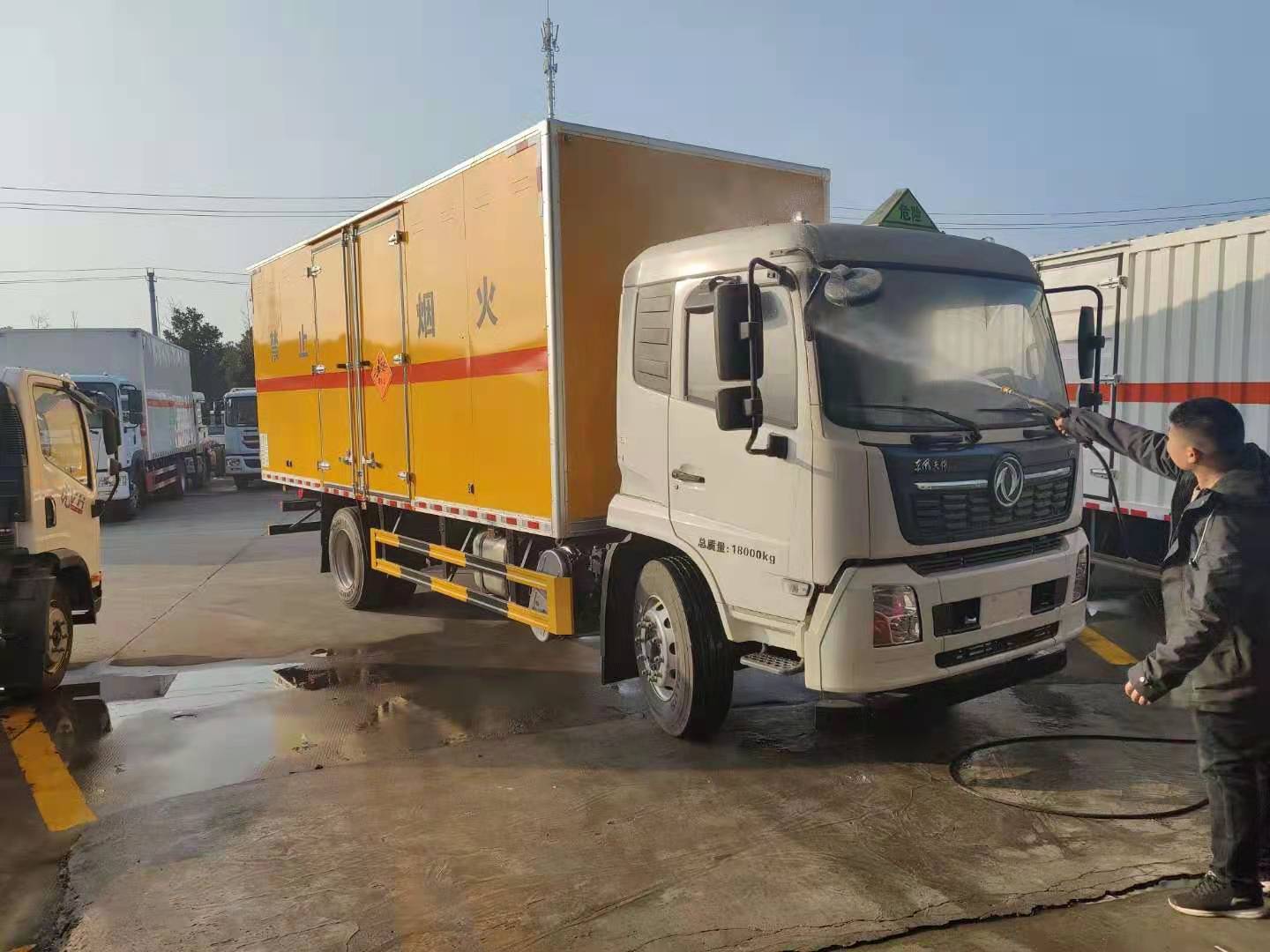 東風(fēng)天錦炸藥車嚴(yán)格按照公告尺寸制作,外板采用 1mm 厚冷軋板有一次性成型的百葉窗,內(nèi)飾為導(dǎo)電性能良好的鋁板有透氣孔,內(nèi)襯為矩形管骨架牢靠穩(wěn)定,內(nèi)部填充為透氣防潮阻燃的擠塑板,四種材料經(jīng)現(xiàn)代工藝復(fù)合而成,廂體外部上下鋁合金型材包邊,底板和車廂前下部鋪橡膠皮,后門雙開,右側(cè)中部兩個雙開門,內(nèi)部有固定貨物的臥環(huán),車輛外部有靜電帶、滅火器、防火罩,車廂內(nèi)安裝煙霧報警器和門防盜報警器,嚴(yán)格按照國家危險品相關(guān)法規(guī)張貼。廂體內(nèi)部安裝便于可固定貨物的卡槽,底板為3mm鋼板上面鋪防靜電膠皮,靜電拖地帶,滅火器兩個,危險品三角頂燈,防火帽,廂體顏色白色,其他嚴(yán)格按公告制作。 底板為3mm鋼板上面鋪防靜電膠皮,靜電拖地帶,滅火器兩個,危險品三角頂燈,防火帽,廂體顏色白色,其他嚴(yán)格按公告制作。
