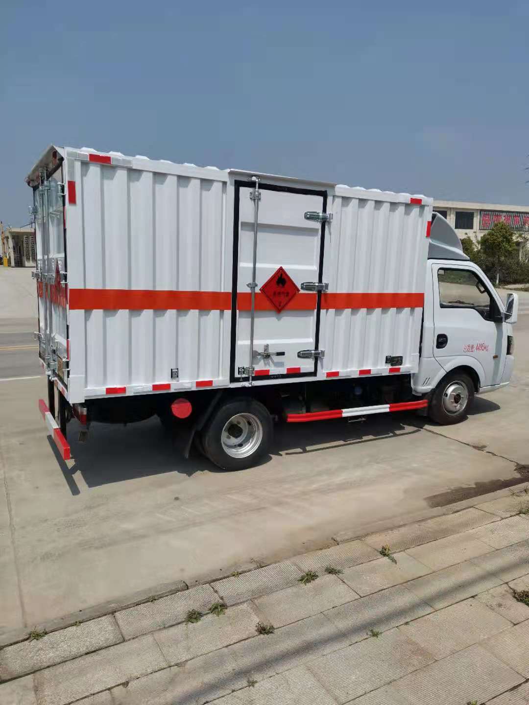 東風(fēng)途逸國六瓦楞板危險(xiǎn)品車廂體材質(zhì)為瓦楞廂體,底部鋪有阻燃導(dǎo)靜電膠板,廂體側(cè)面裝有固定拉環(huán)。在車廂內(nèi)頂部安裝感煙報(bào)警器,在門器框上方安裝有防盜報(bào)警器,廂體外側(cè)安裝示廓燈及滅火器支架,配置兩個(gè)滅火器,并有“嚴(yán)禁煙火”和“易燃?xì)怏w”等字樣,廂體周邊貼反光標(biāo)識(shí)。后門貼有安全告示,危險(xiǎn)品標(biāo)牌。車輛尾部副梁安裝兩條拖地導(dǎo)靜電帶,駕駛室頂部裝有安全三角燈。廂體顏色可定制:黃、白、灰色等。