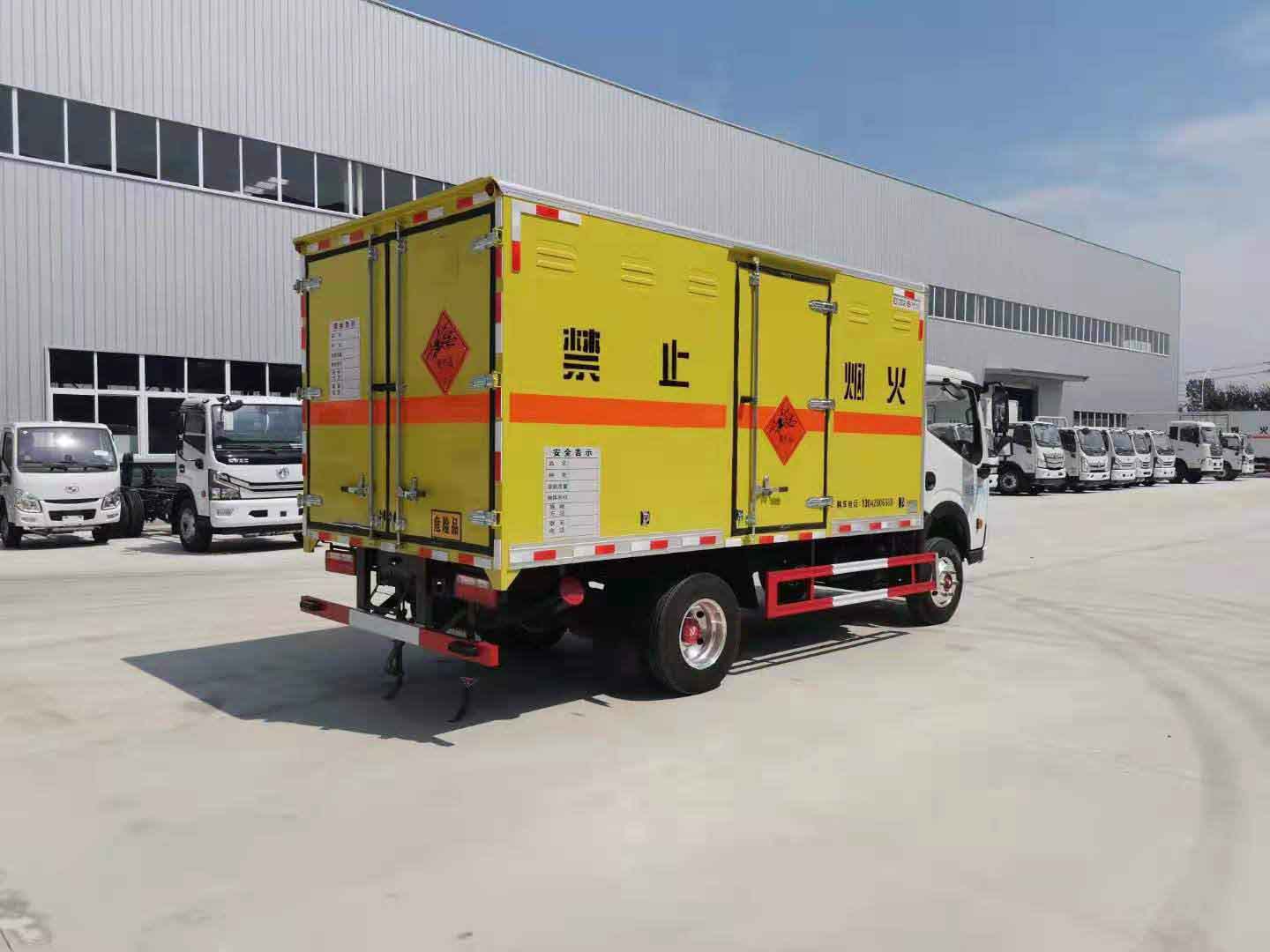東風多利卡玉柴140馬力爆破器材運輸車廂體外板采用冷軋鋼板一次性沖壓成型的百葉窗,內飾為導電性能良好的鋁板有透氣孔,內襯為矩形管骨架牢靠穩定,骨架內部填充為透氣防潮阻燃的擠塑板。廂體外部四周鋁合金型材包邊,底板和車廂前下部鋪橡膠皮,后門雙開,右側選裝側開門,內部安裝固定貨物的臥環或腰欄,安裝煙霧報警器、防盜感應器。車身附件靜電接地帶、滅火器、防火罩、危險品三角燈、橙色反光帶、菱形標志牌、危險品牌、安全告示齊全。