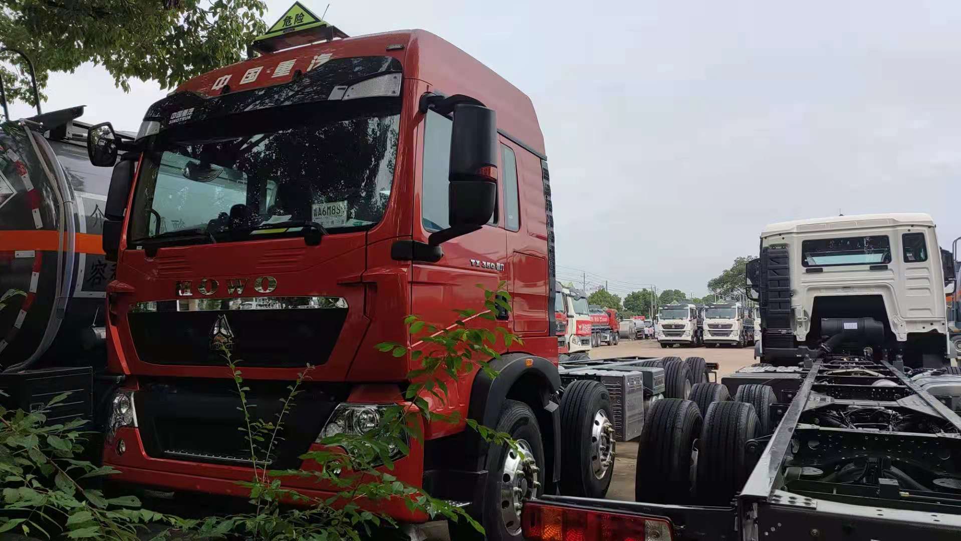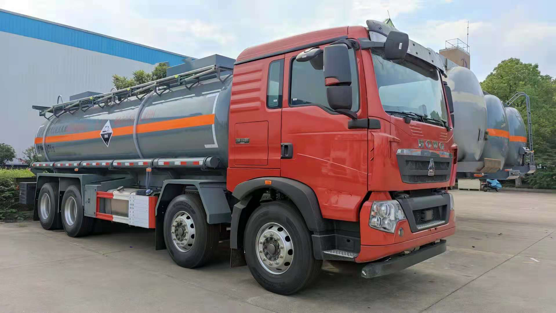 重汽豪沃前四后八腐蝕品罐式運輸車采用豪沃TX5危險品車底盤,TX-V駕駛室,帶多功能方向盤;主氣囊+副簡易型座椅;MC07H.35-60發動機;HW13709XSTC2變速箱+HW70法蘭式取力器;VPD75D前軸(盤);MCY11BES雙后橋(盤);速比4.63;雙層車架(8+4/280);前少后空氣懸架(3/3/-/-);8198方向機;前置排氣系統;EBS+ESC;中位保險杠(非金屬); 12R22.5;400L油箱;LDWS+FCWS(帶雷達);拉索式PTO;中國重汽智能通B版;終端排放監控裝置;轉向輪爆胎應急裝置;選裝胎壓監測系統。