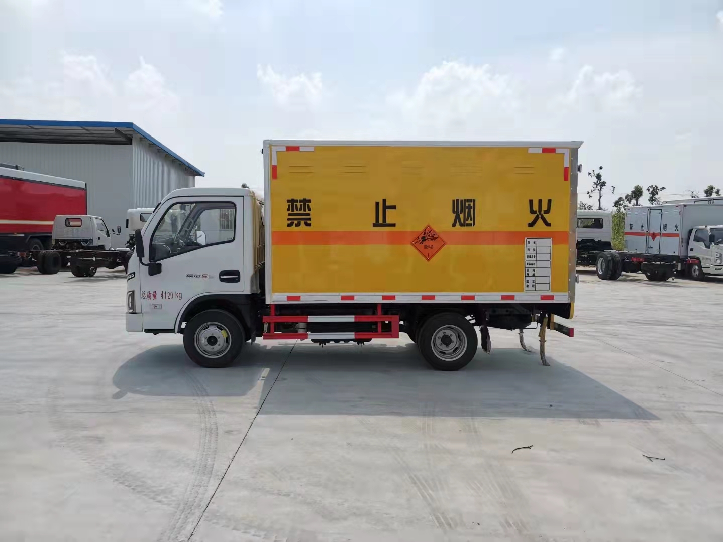 躍進柴油國六帶前開側門民爆車采用躍進專用危險品車底盤,S80單排駕駛室,國六全柴95馬力,5檔變速器,185R15后雙胎,方向助力,空調,中控鎖,電動玻璃,遙控鑰匙,3t后橋,3/4+5雙層板簧,油剎、前盤制動,ABS,限速80,前置排氣管,防爆輪胎,2850軸距。根據客戶運輸需求,民爆品車輛全部采用的是前開側門危險品車,方便裝卸貨物。
