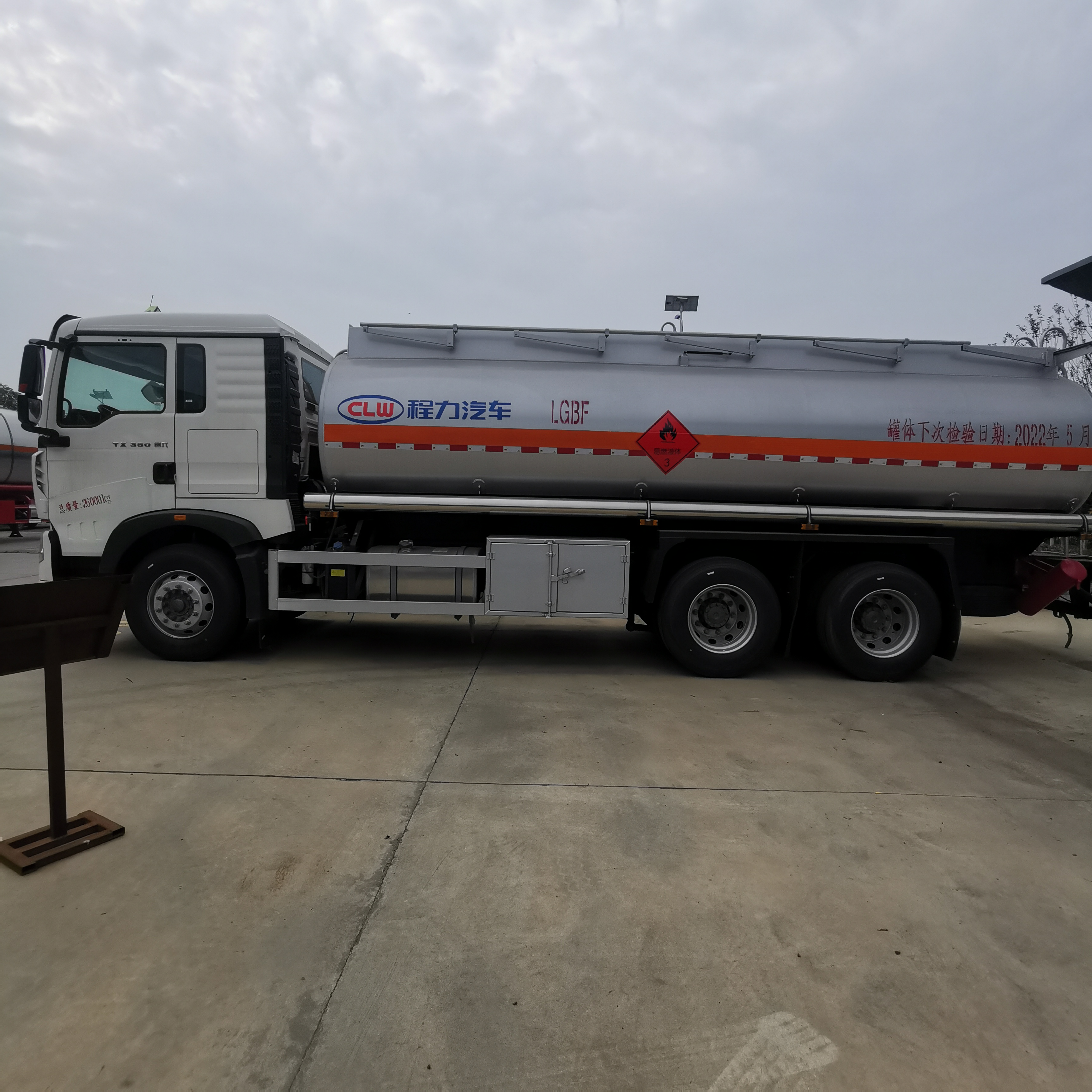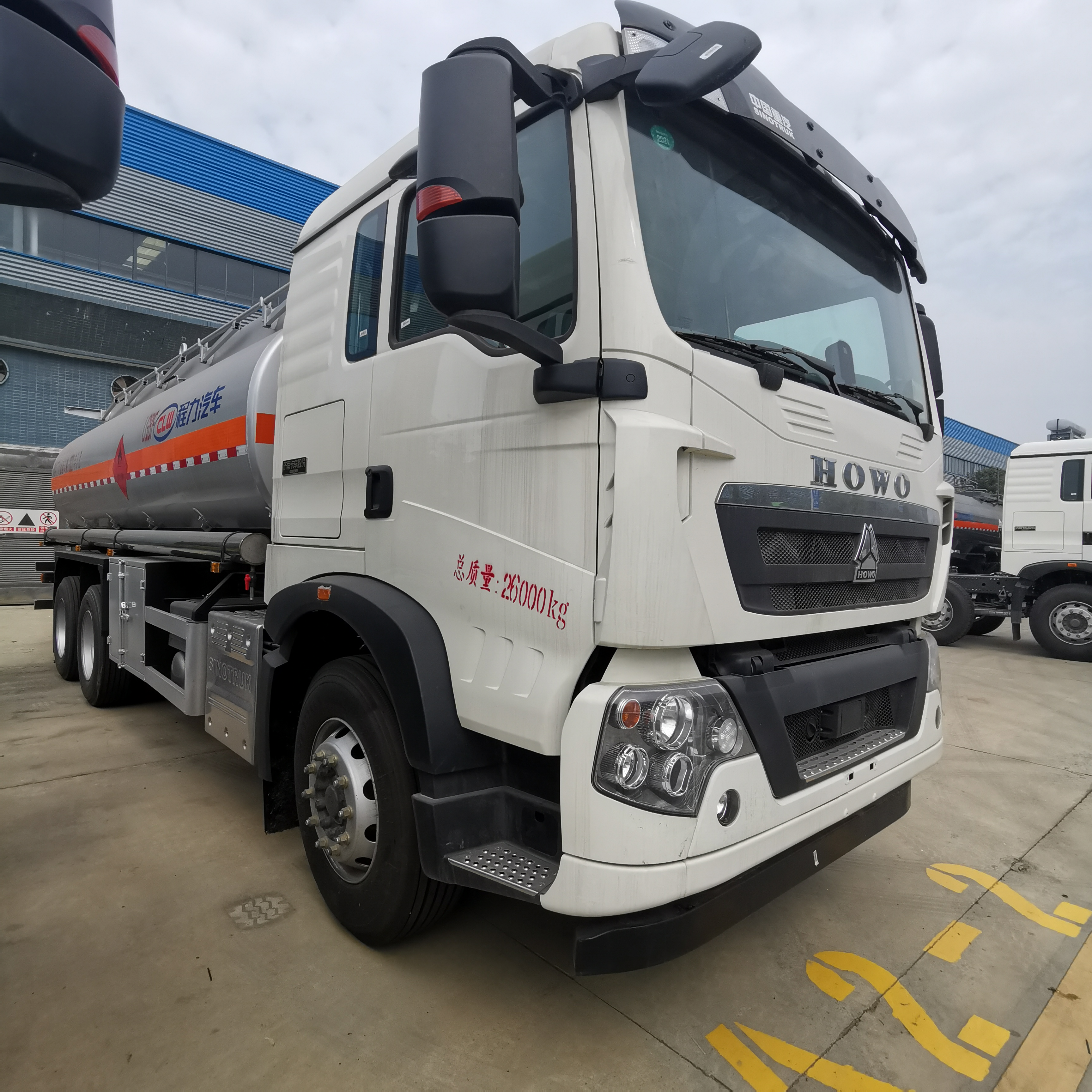 油罐車:又稱流動加油車、電腦稅控加油車、引油槽車、裝油車、運油車、拉油車、石油運輸車、食用油運輸車,主要用作石油的衍生品(汽油、柴油、原油、潤滑油及煤焦油等油品)的運輸和儲藏。 油罐車根據不同的用途和使用環境有多種加油或運油功能,具有吸油、泵油,多種油分裝、分放等功能。運油車用部分由罐體、取力器、傳動軸、齒輪油泵、管網系統等部件組成。 管網系統由油泵、三通四位球閥、雙向球閥、濾網、管道組成。根據市場需求,目前我司非常受歡迎的當然要數重汽豪沃后八輪國六油罐車,以下是詳細配置如下: